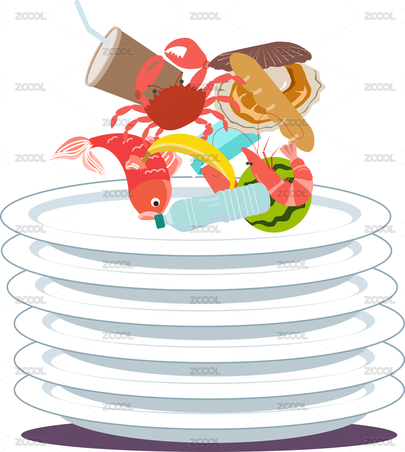 餐饮浪费粮食问题概念插画