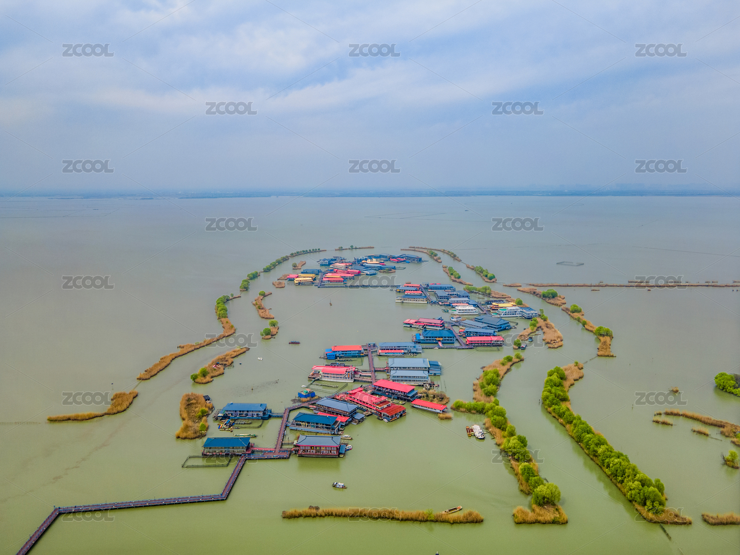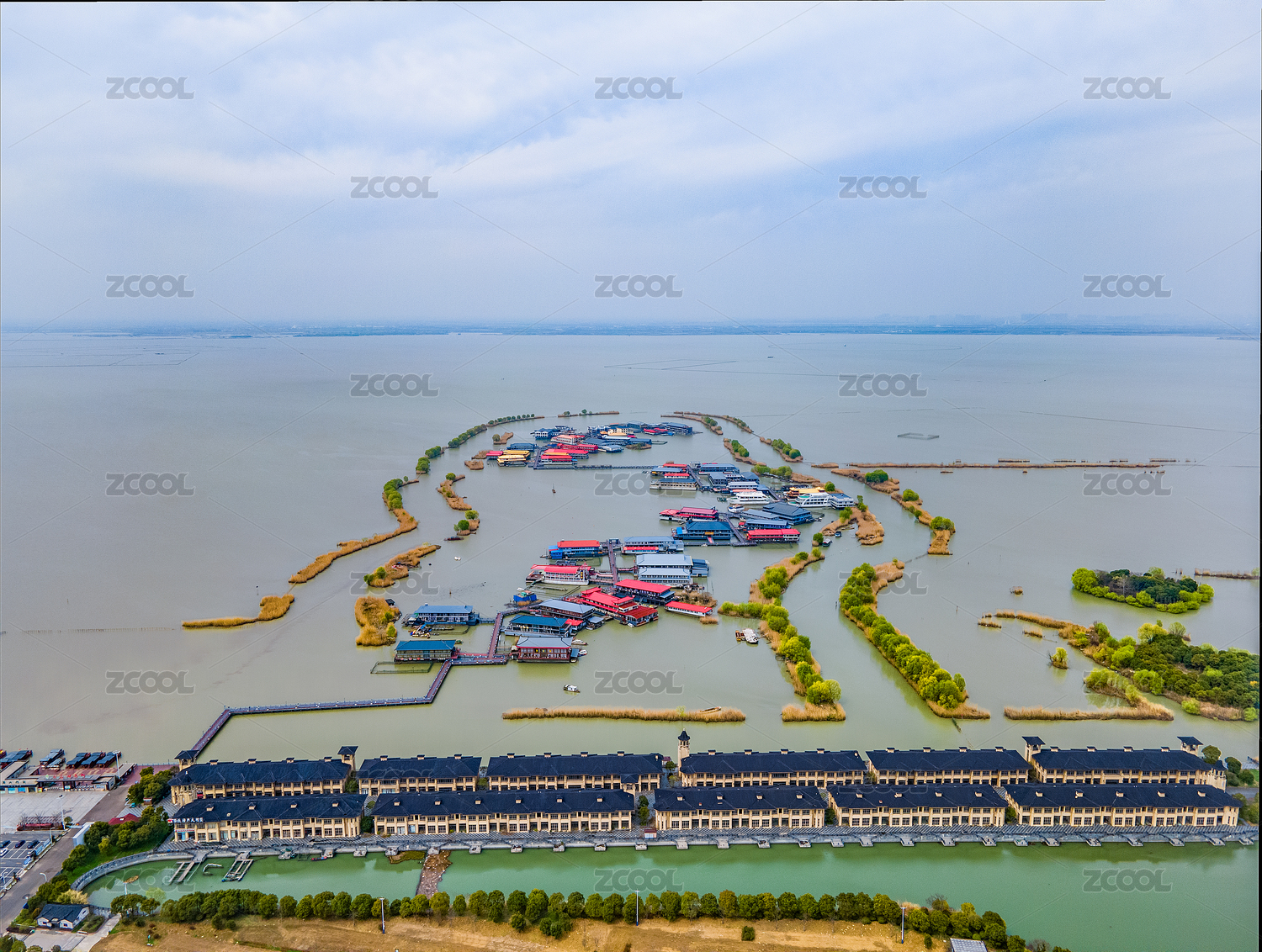 航拍中国江苏省常州金坛长荡湖水街、水城