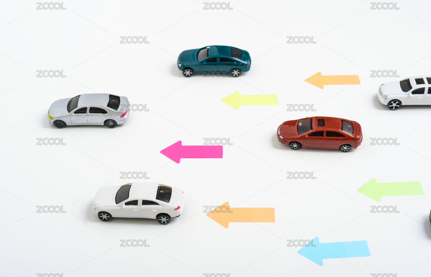 模型汽车和箭头方向