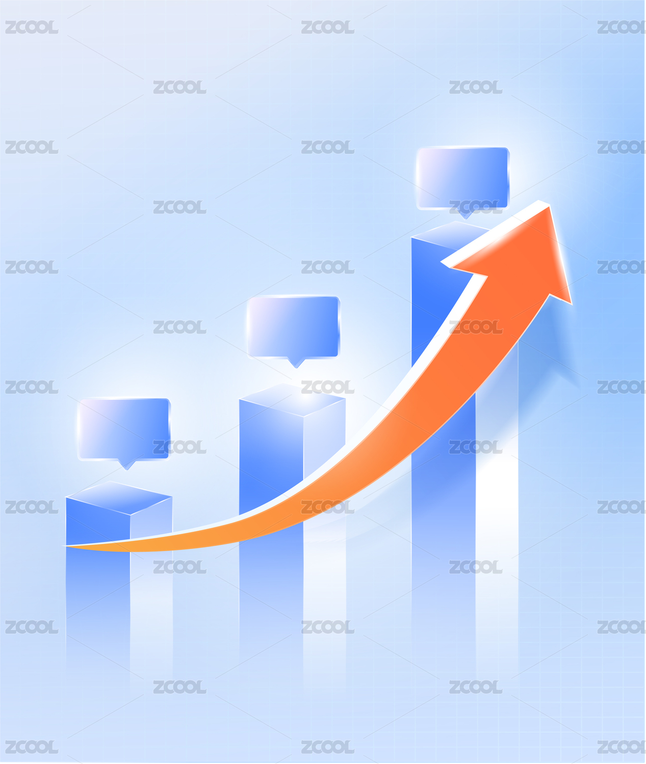 蓝色柱状体和上升的箭头