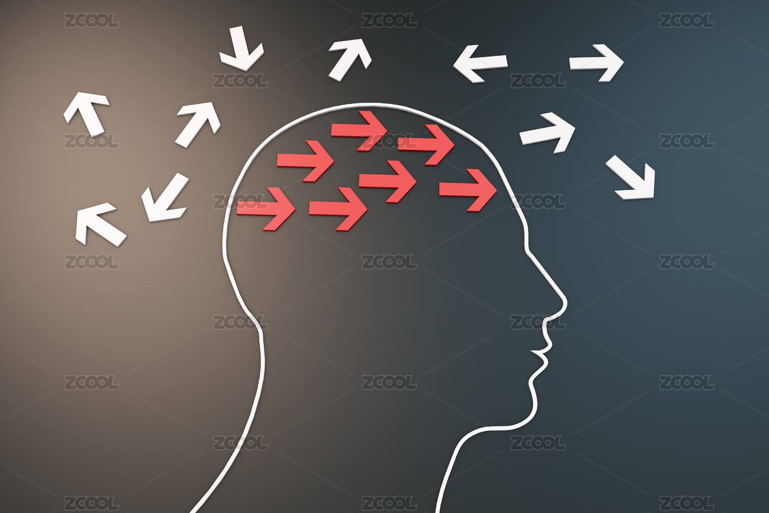 大脑和箭头,事业成功