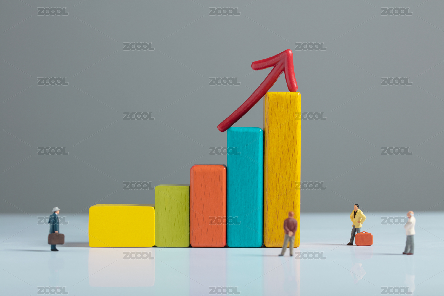 微缩创意投资增长与向上的箭头