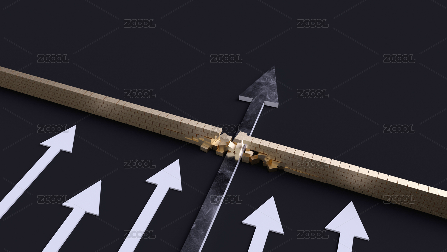 箭头突破金色的墙体概念插图