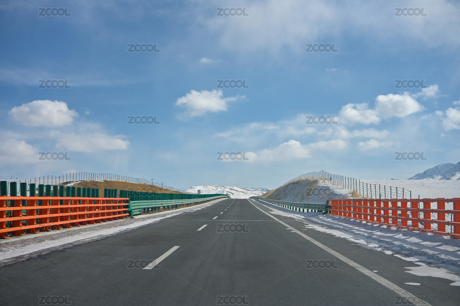 青海省祁连县祁连山雪山下的高速公路
