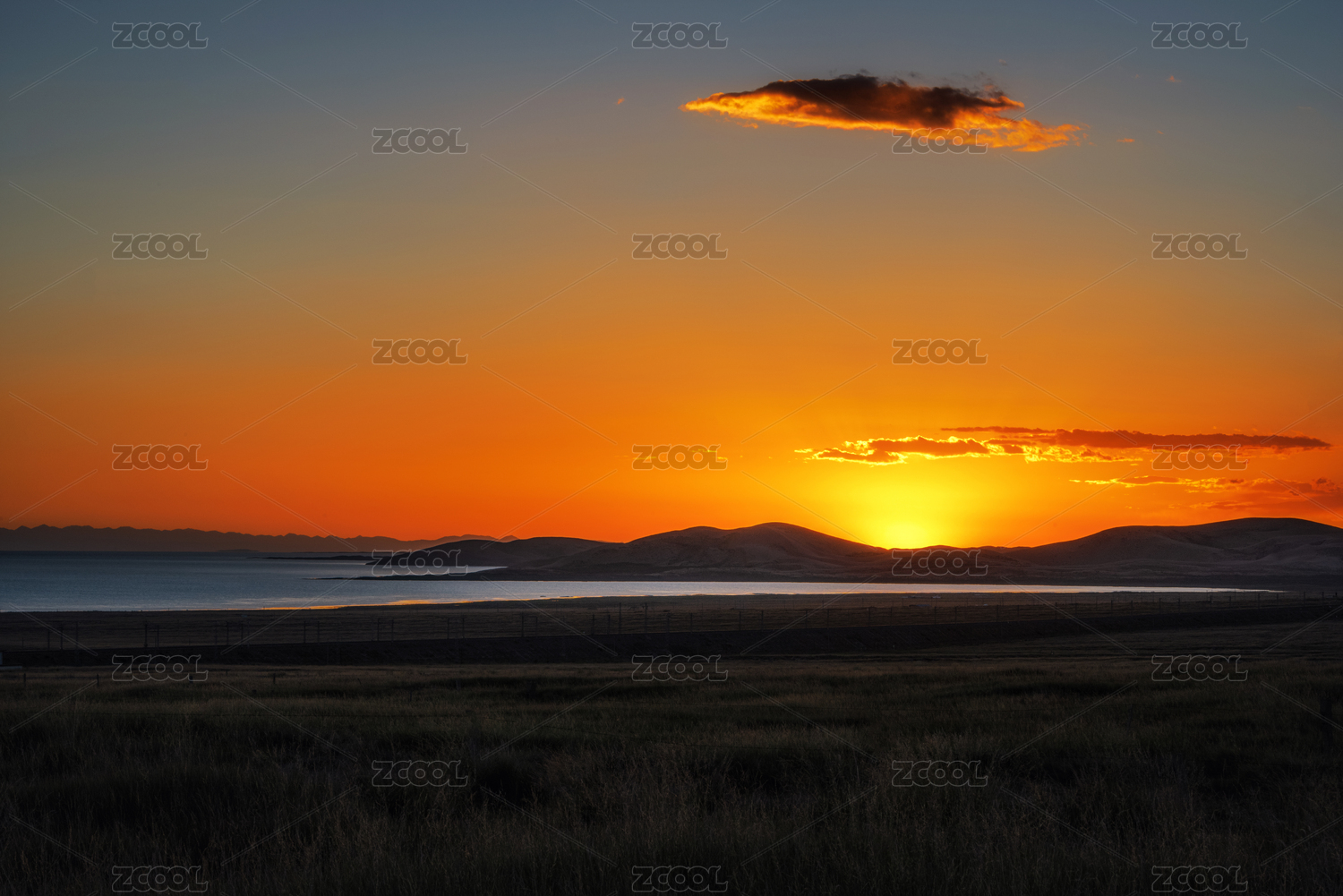 中国青海省海南藏族自治州青海湖日落