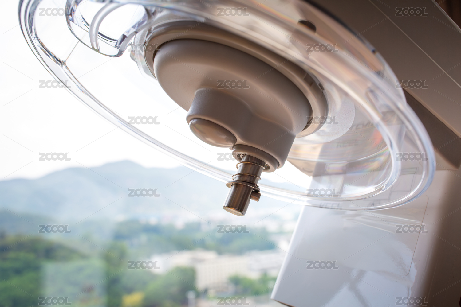 搅拌机的特写镜头展示金属搅拌碗和搅拌钩