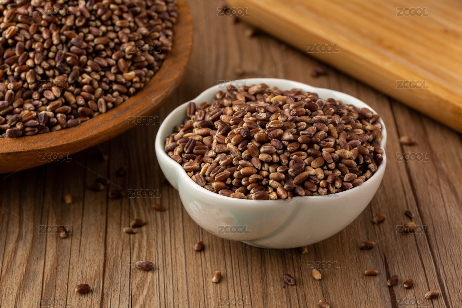 一碗黑麦仁和散落的黑小麦