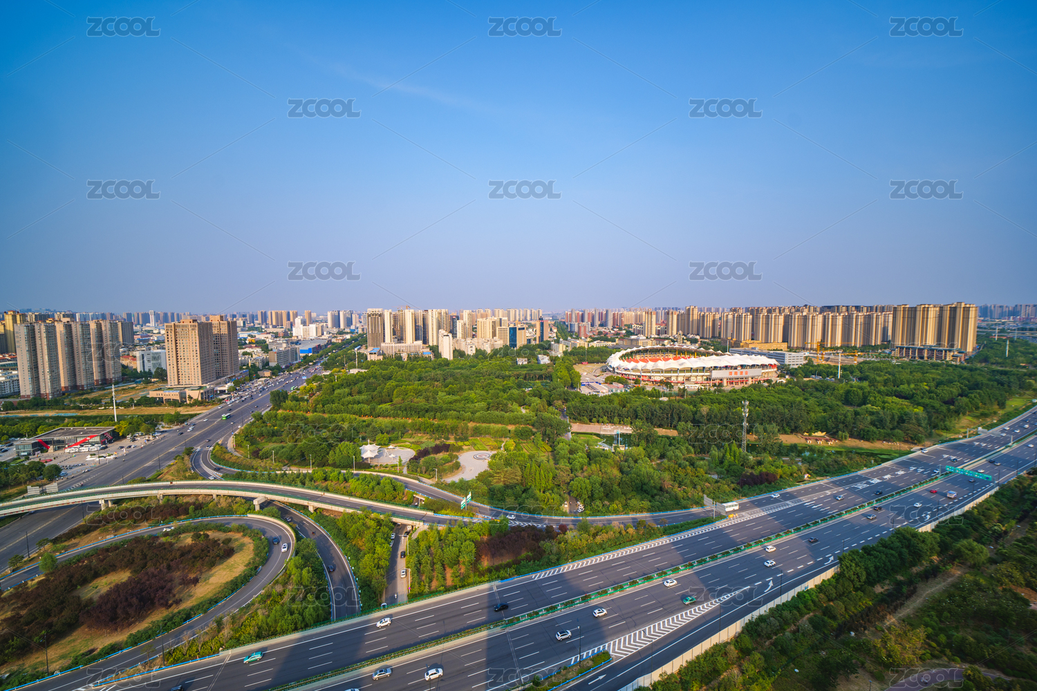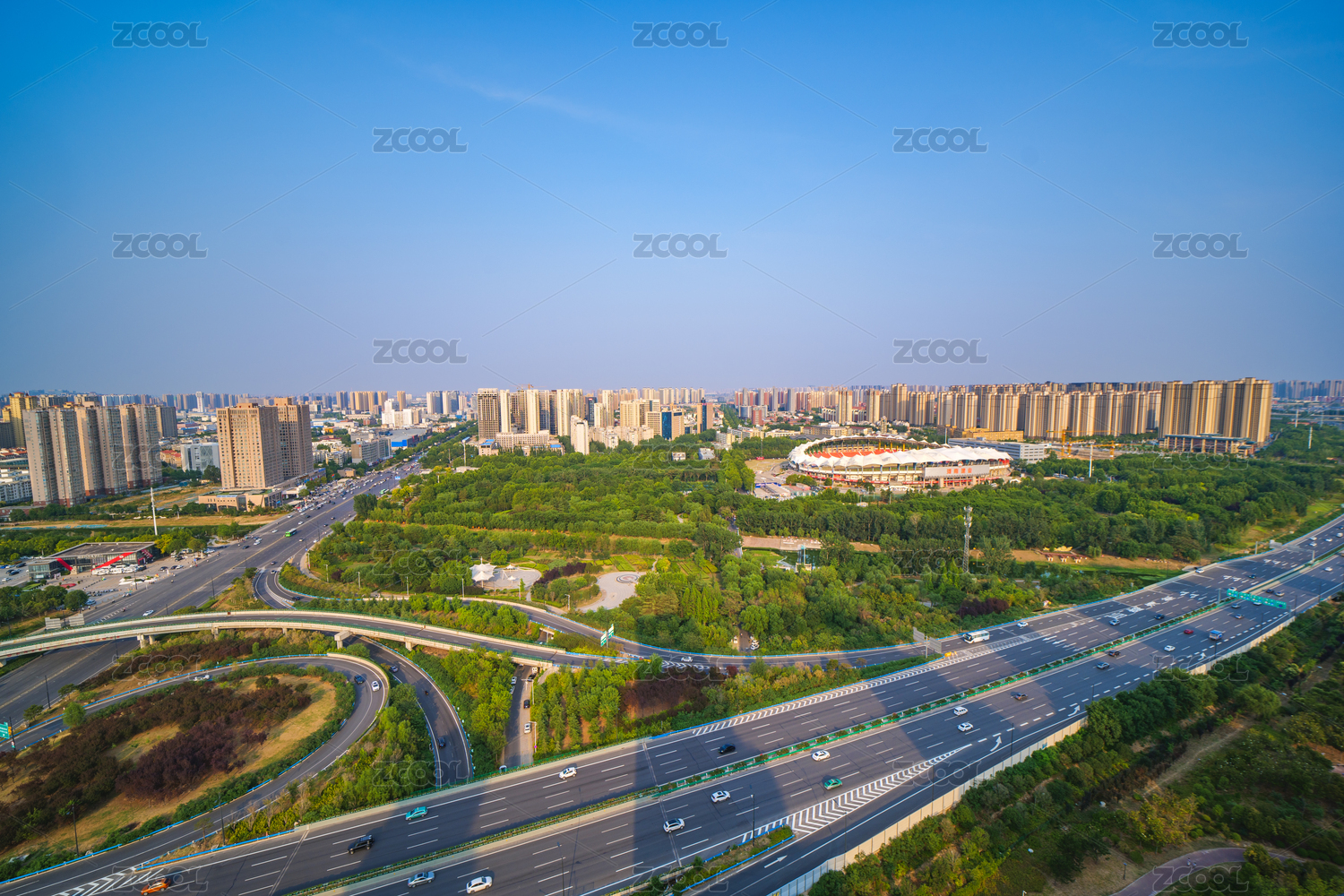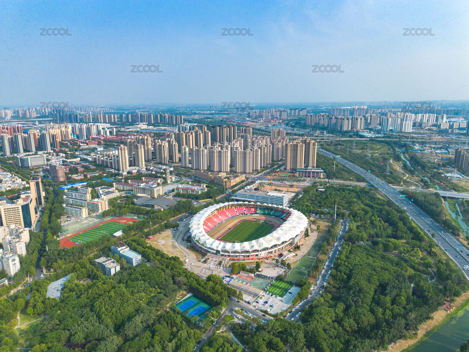 河南郑州航海路体育场航拍