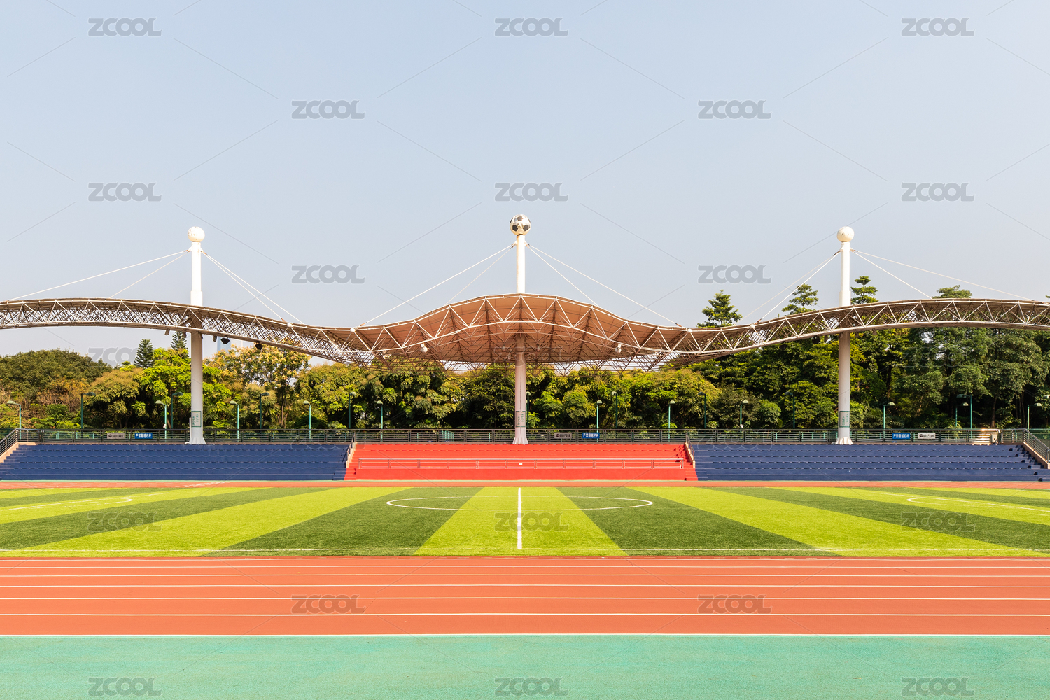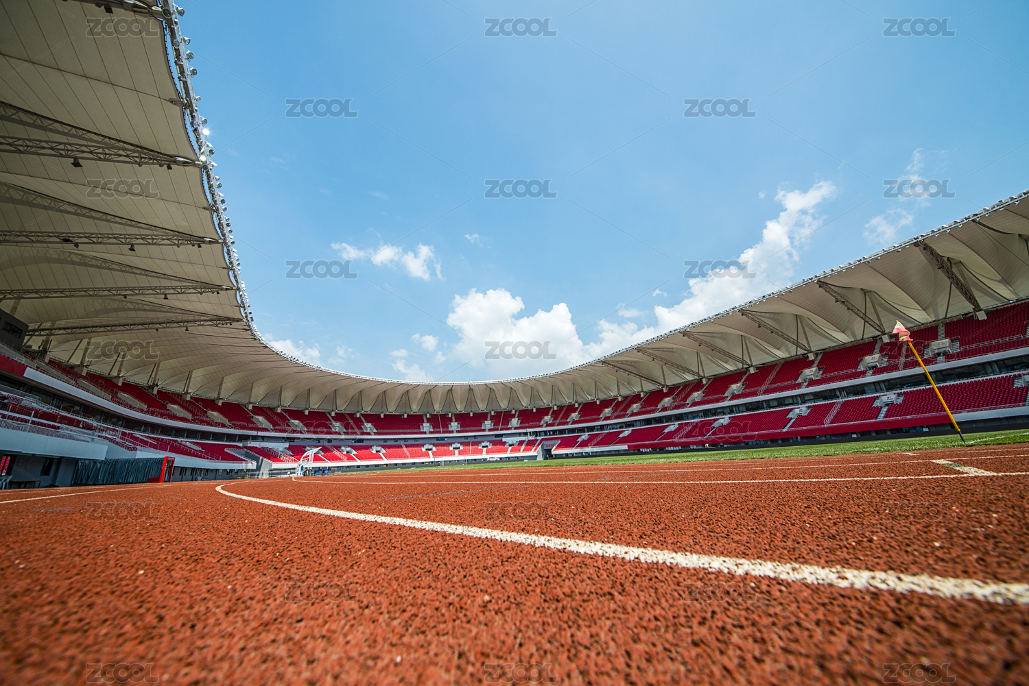 蓝天白云下的体育场