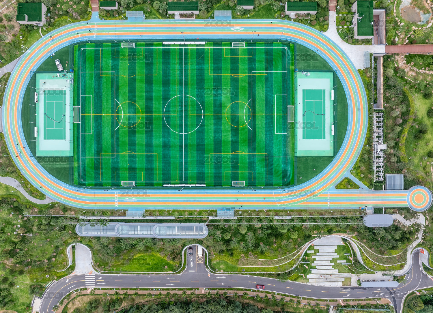 航拍视角体育场