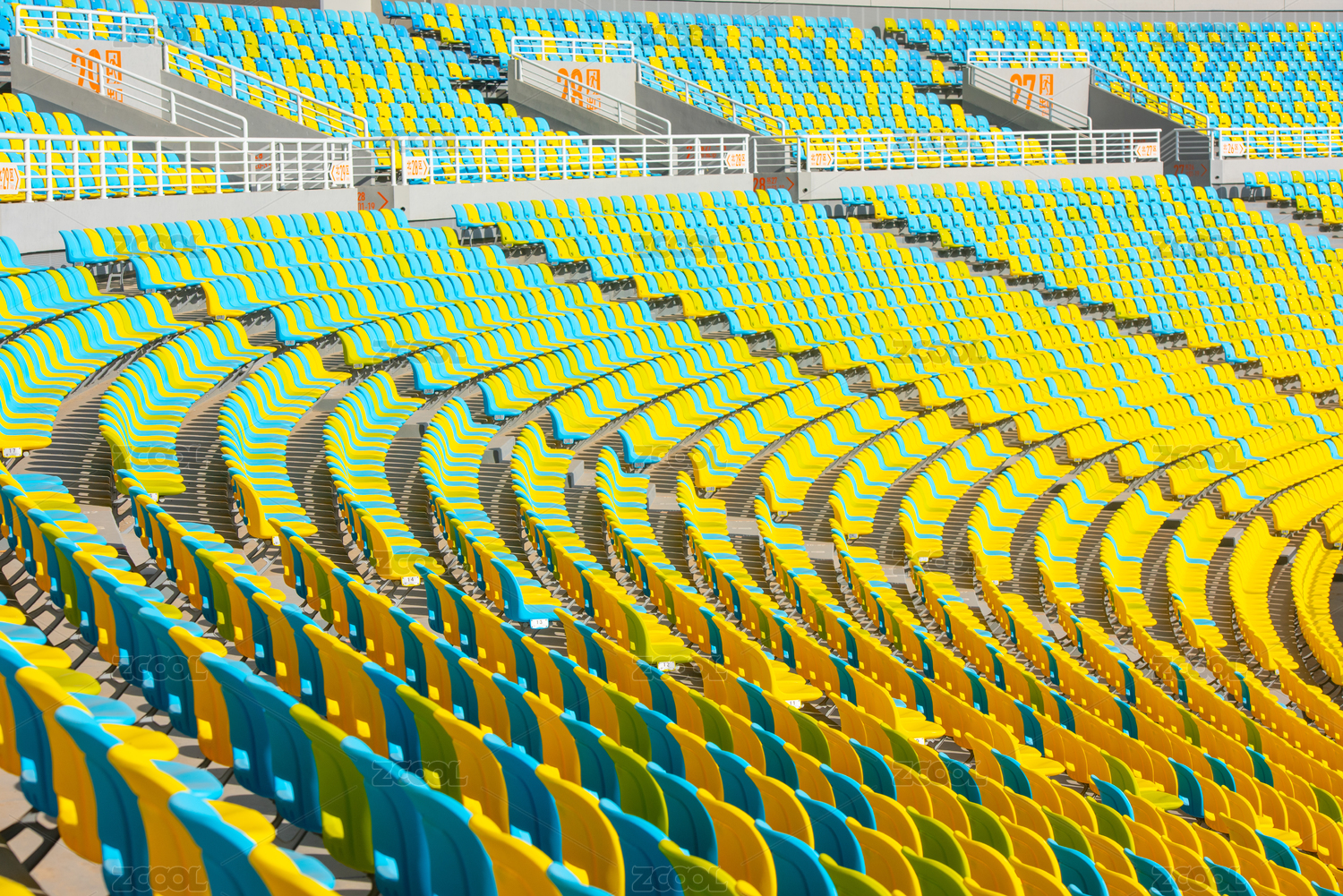 体育场看台排列整齐的黄色座椅