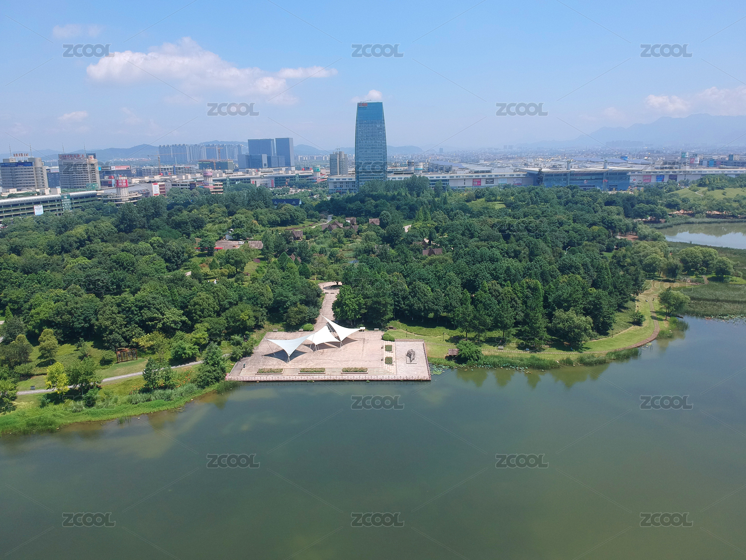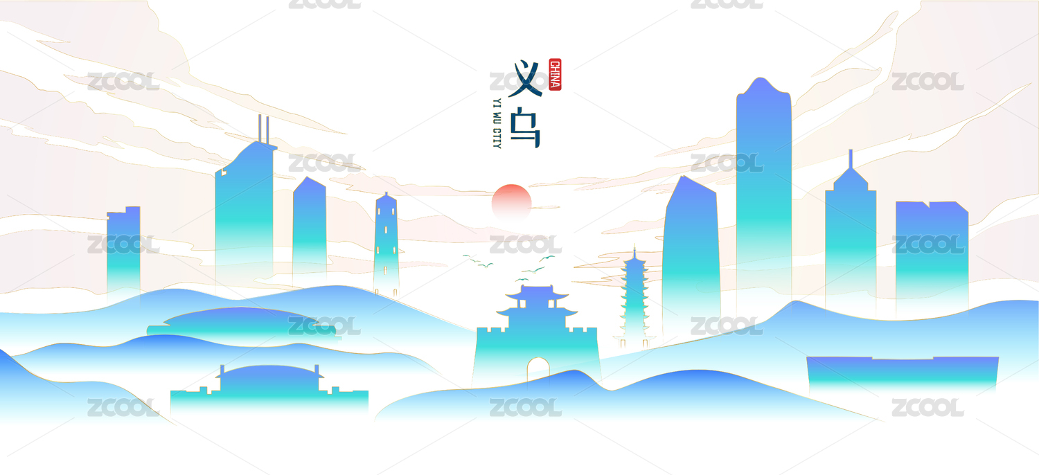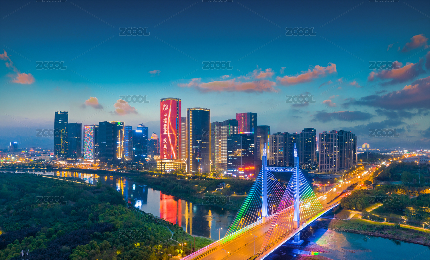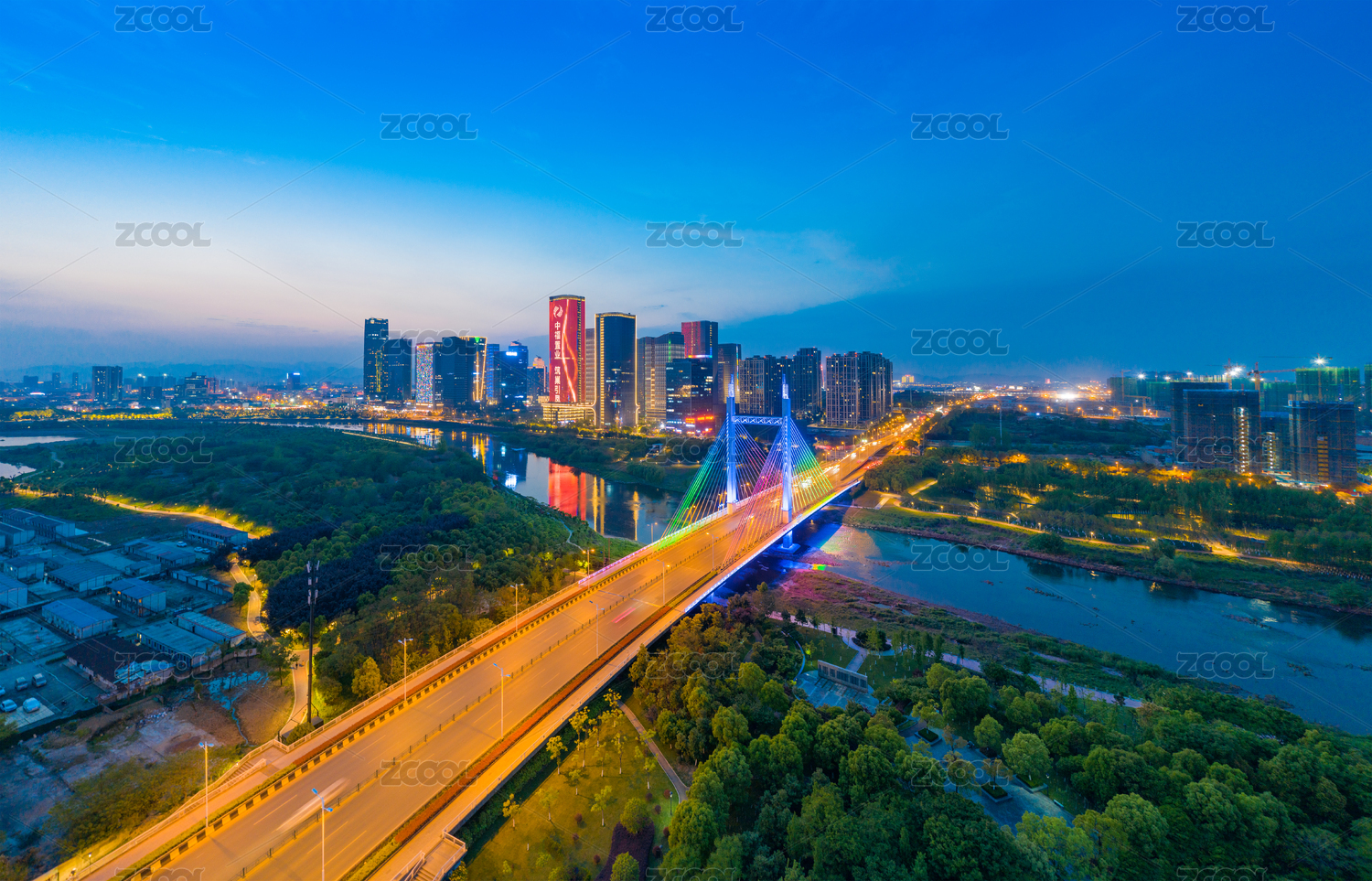 浙江义乌鸡鸣山公园鸡鸣阁夜景航拍