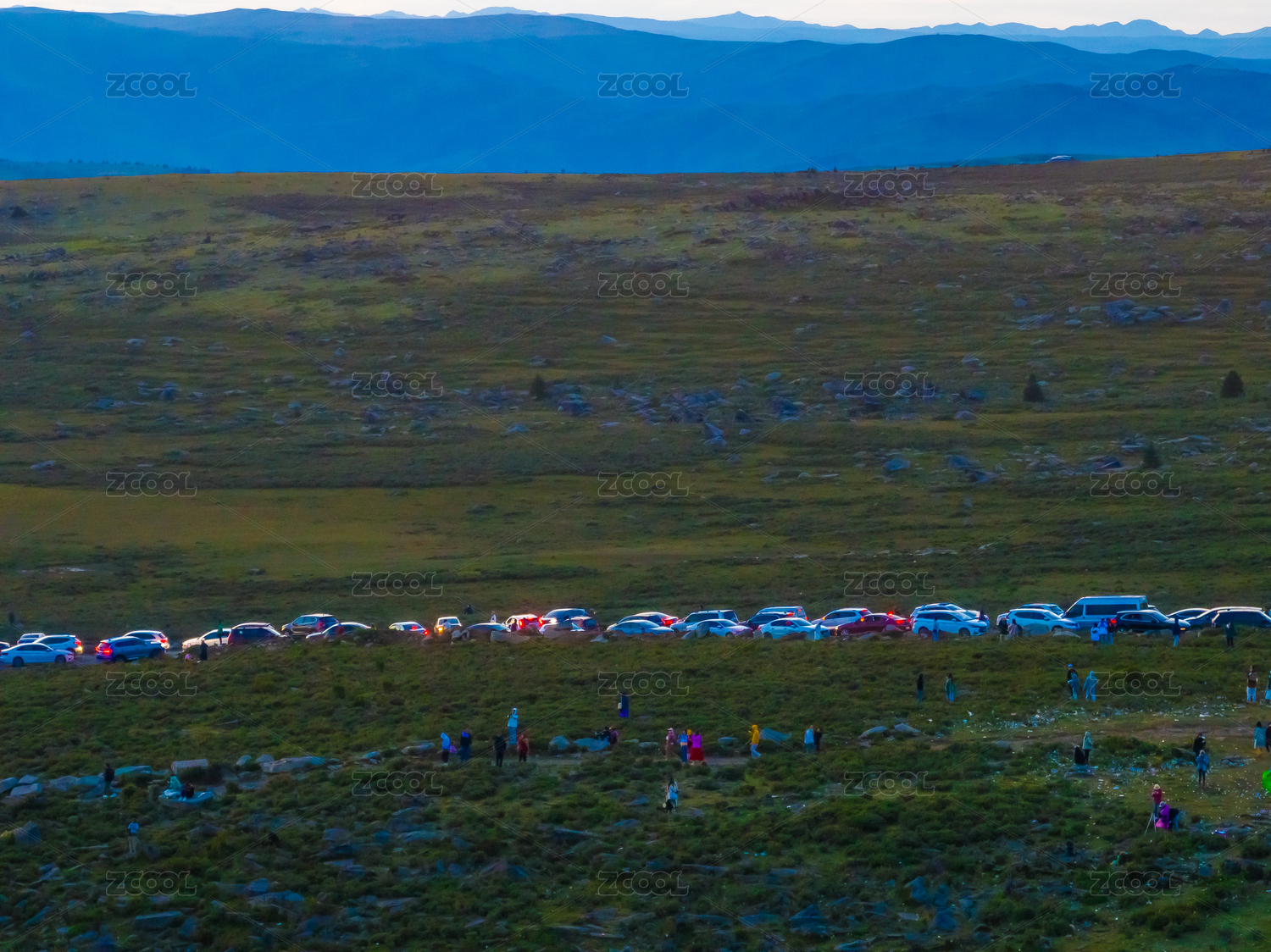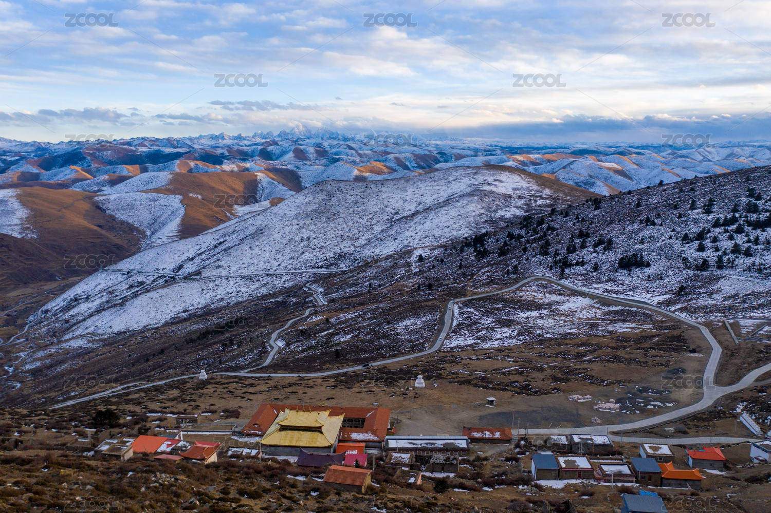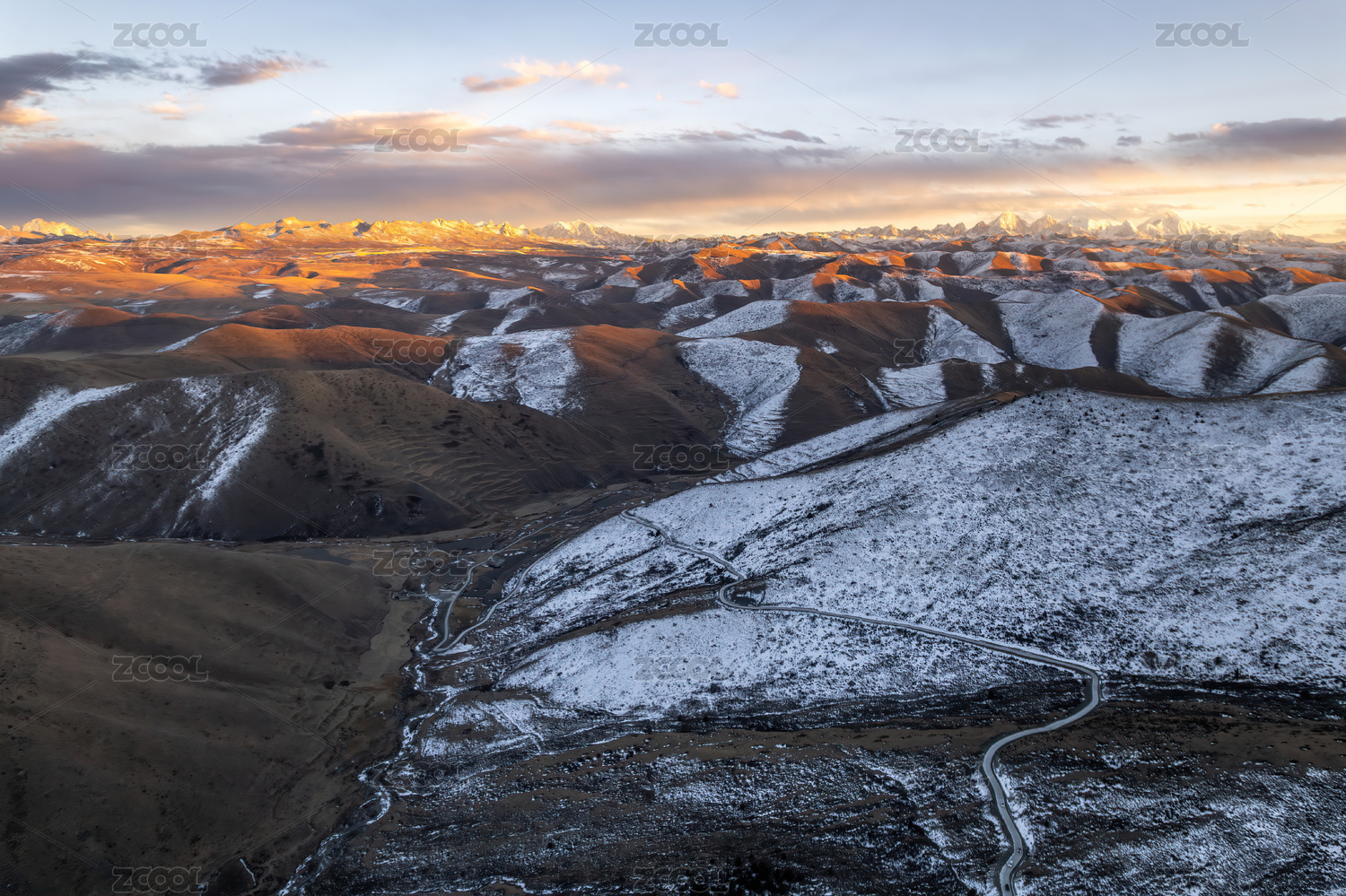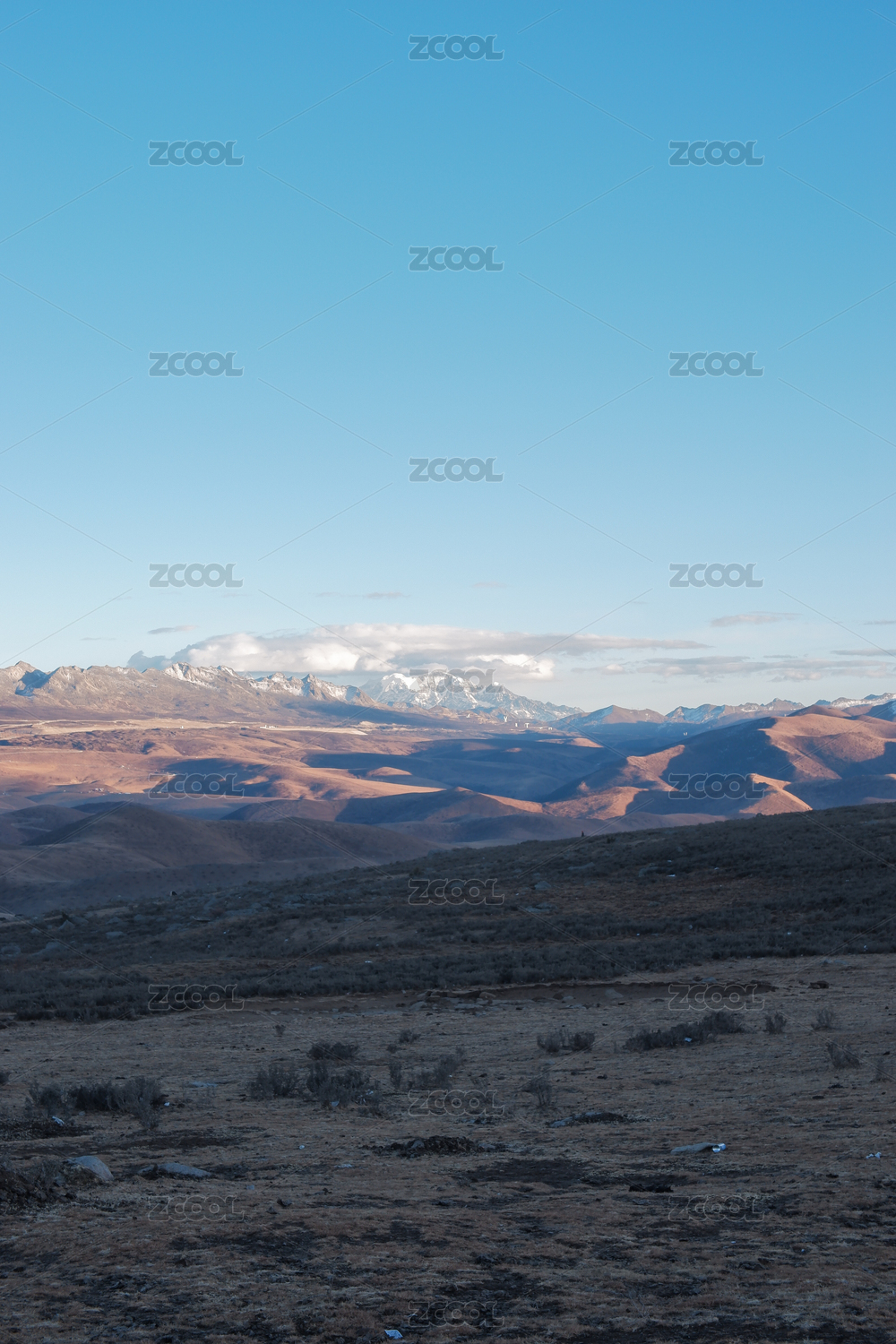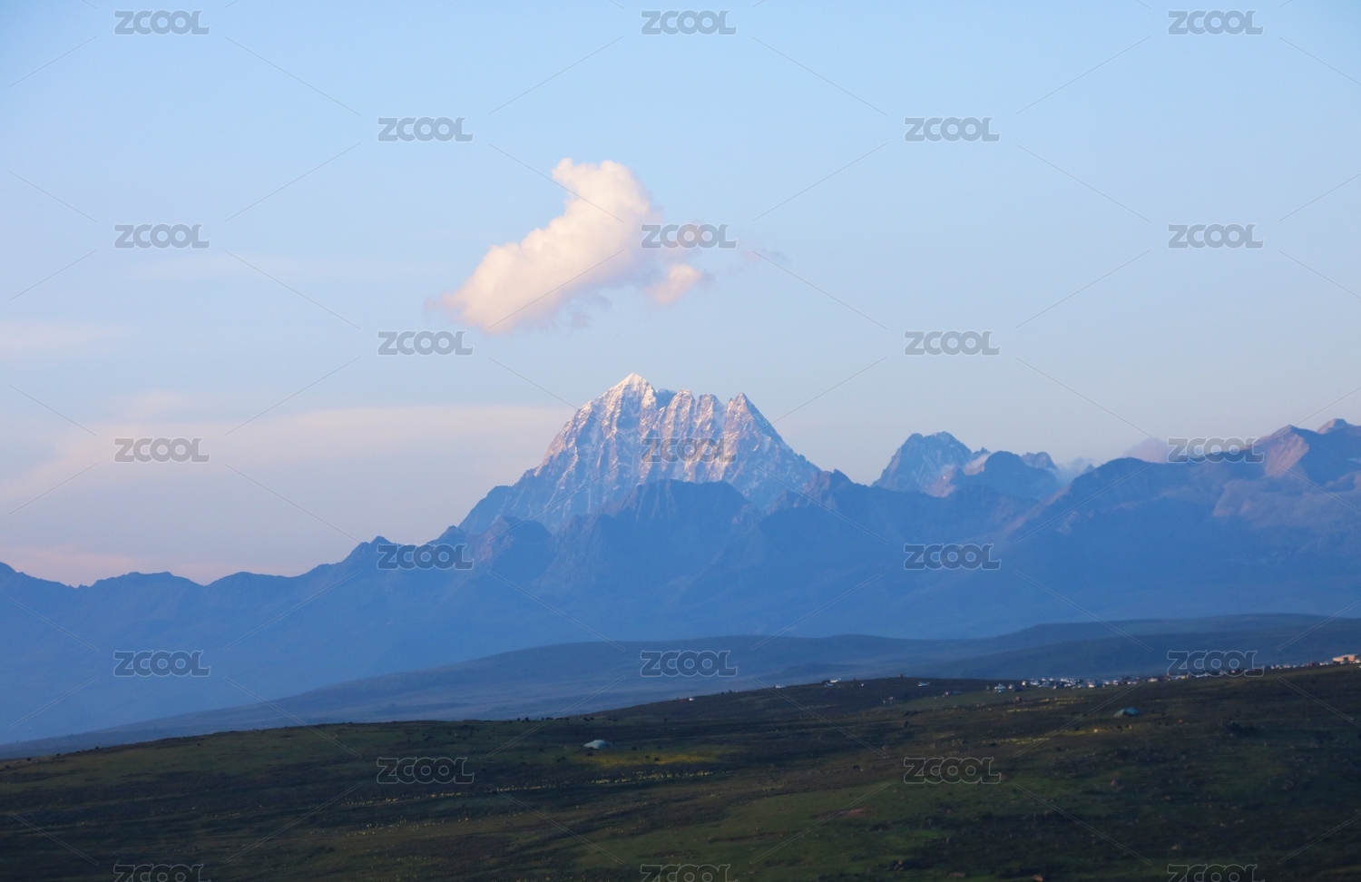 中国四川甘孜州鱼子西傍晚远眺雪山