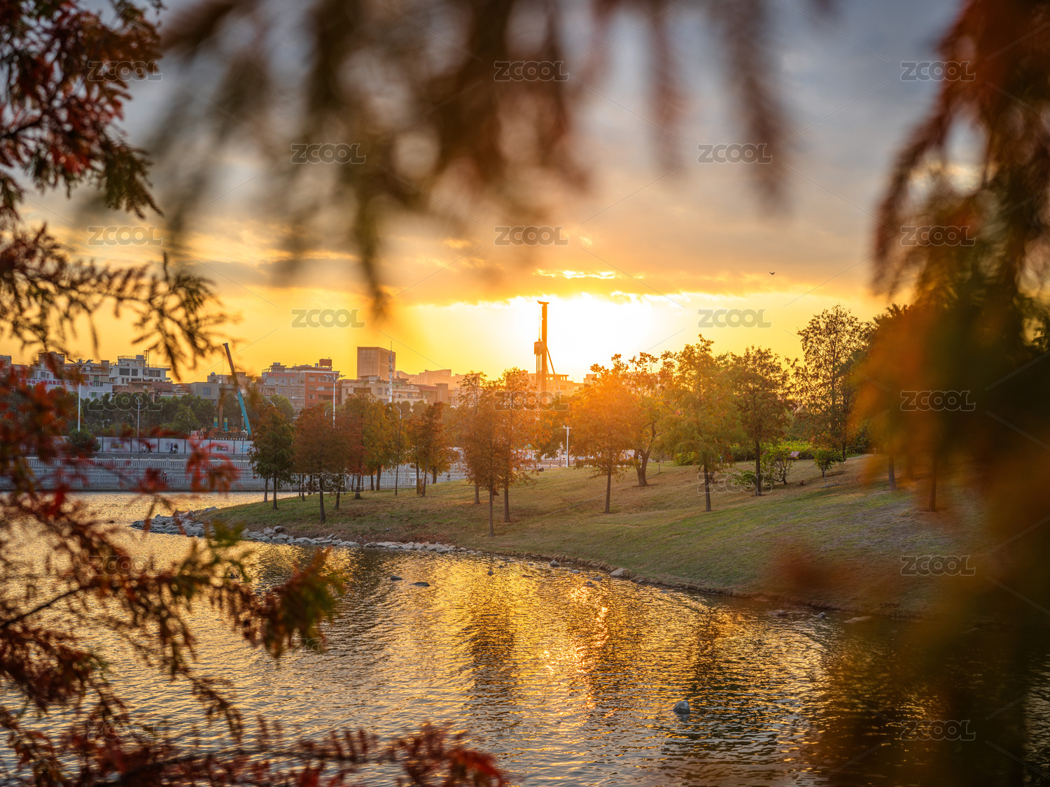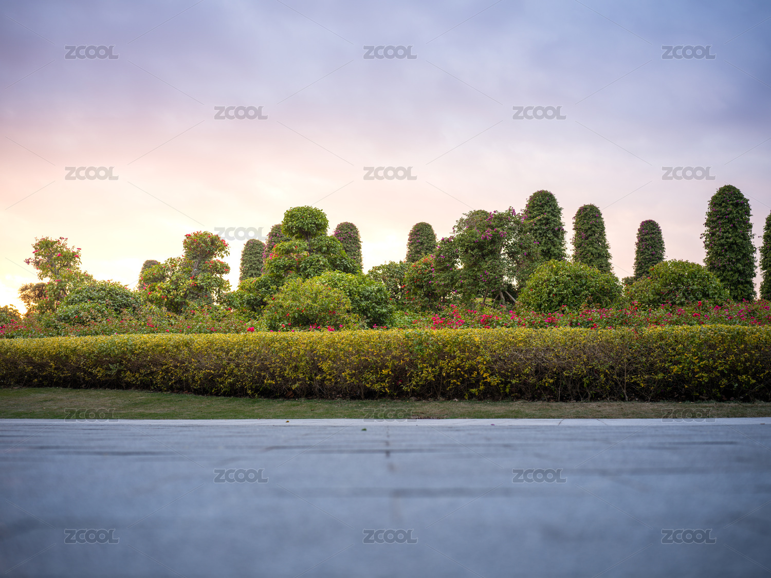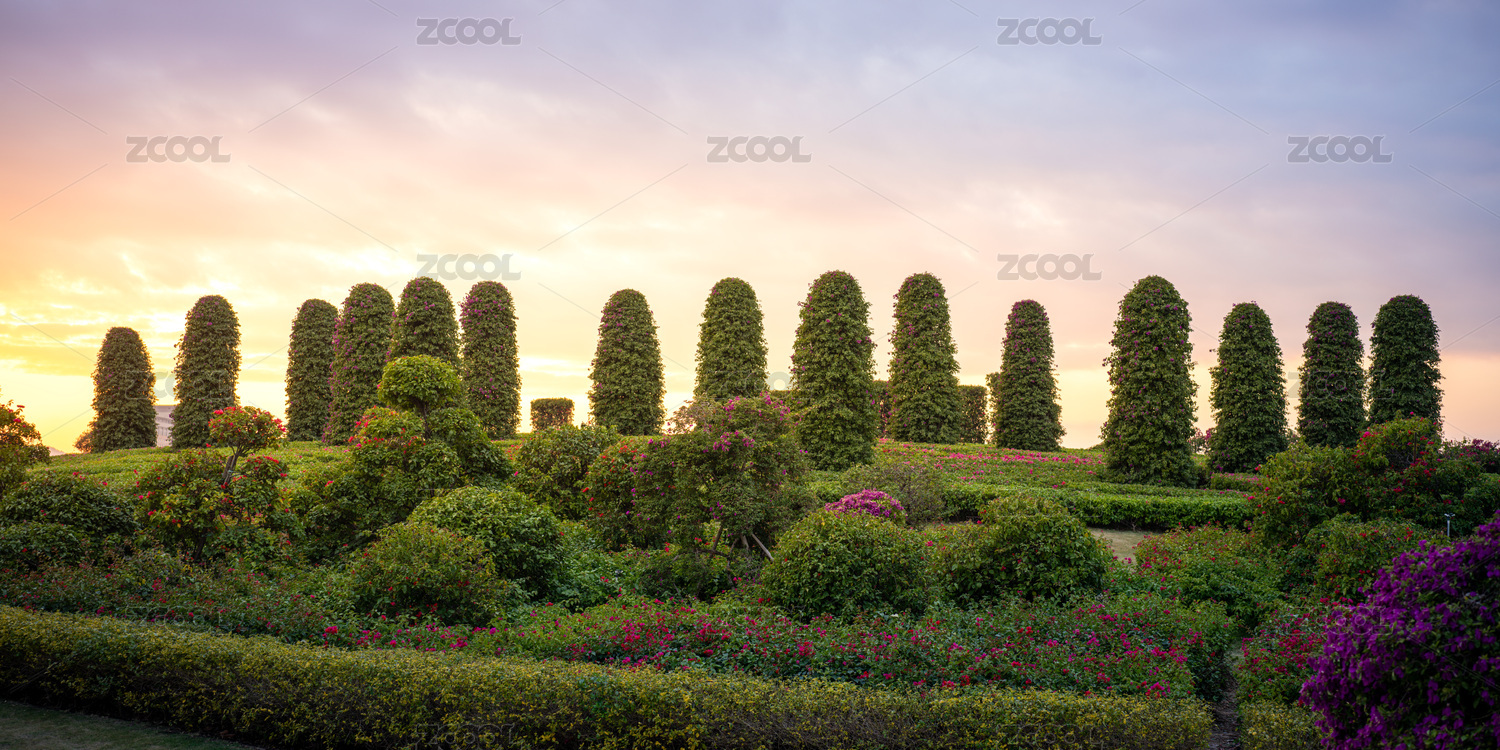 福建厦门马銮湾黄昏下的花园景观