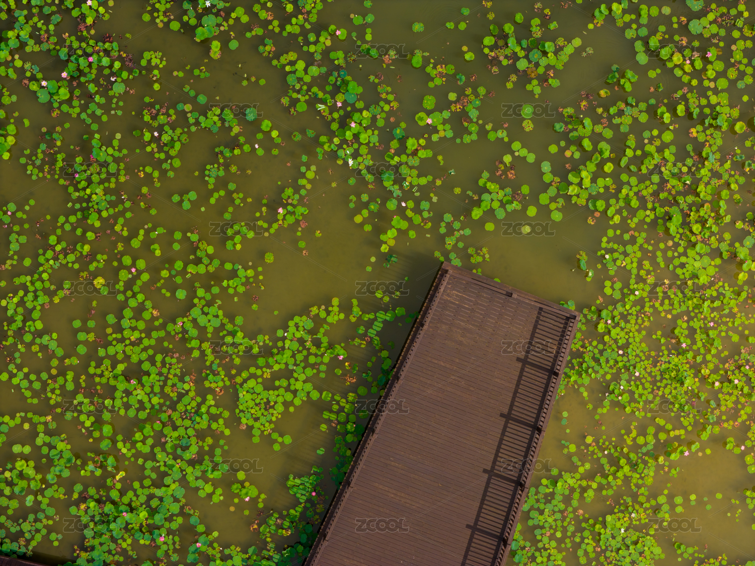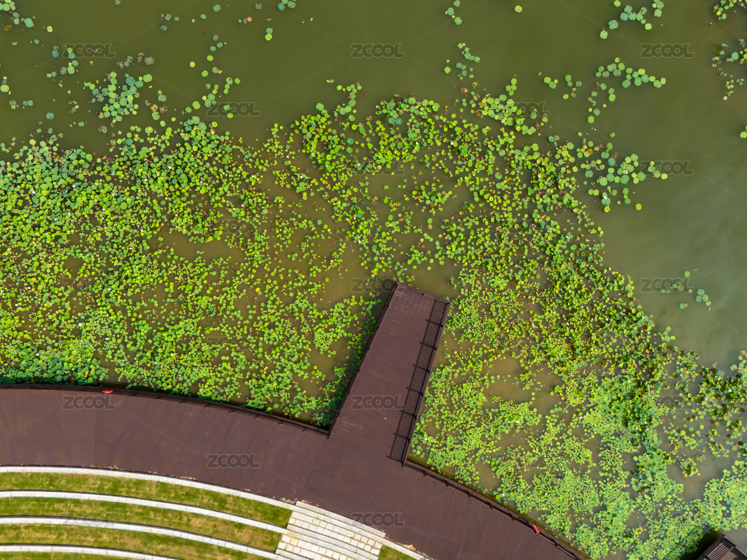 厦门马銮湾双溪湿地公园木桥与浮萍