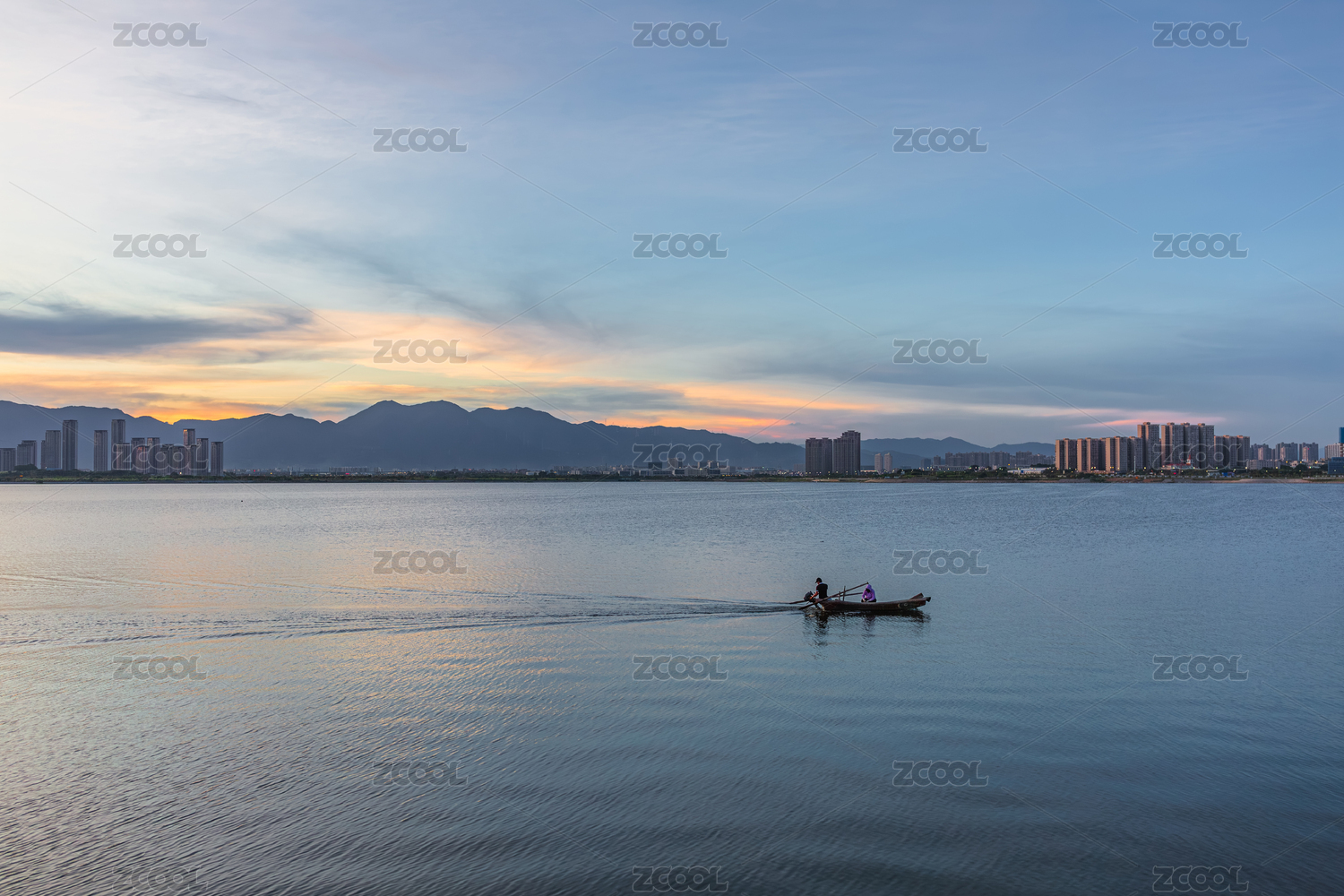 厦门马銮湾湖面上的黄昏小舟