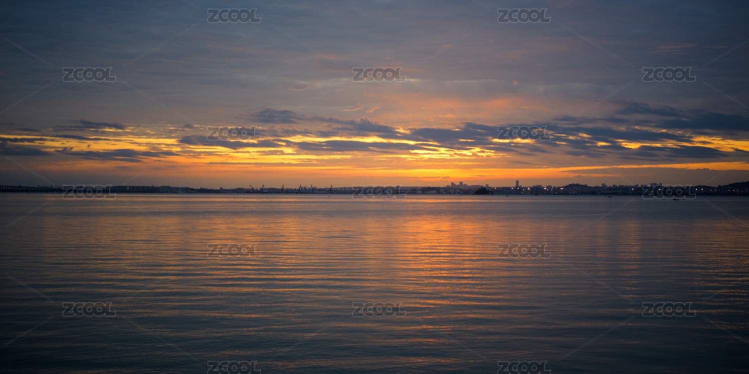 厦门马銮湾海岸日出时分的海面美景