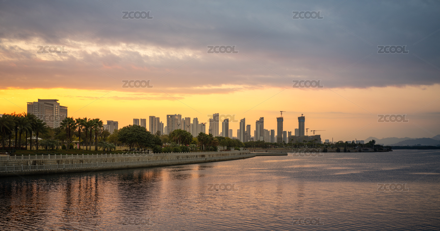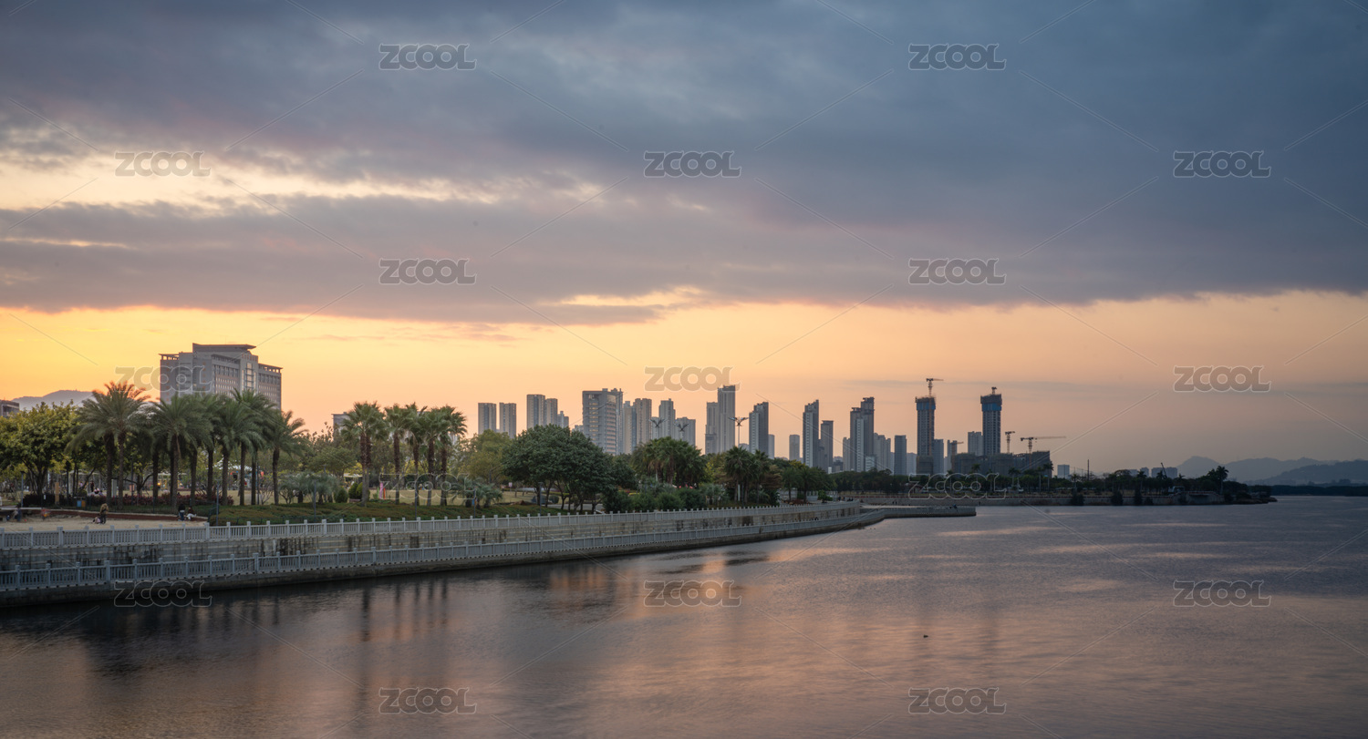 福建厦门马銮湾城市水岸黄昏景观
