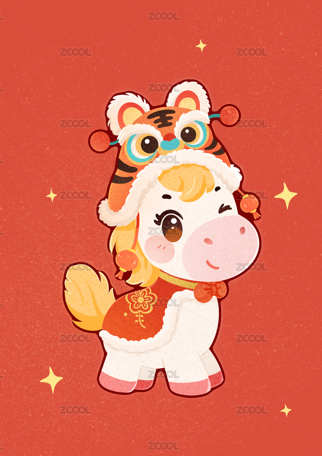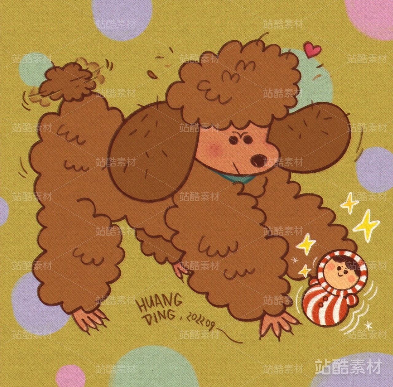 复古手绘萌趣小狗和不倒翁娃娃玩偶