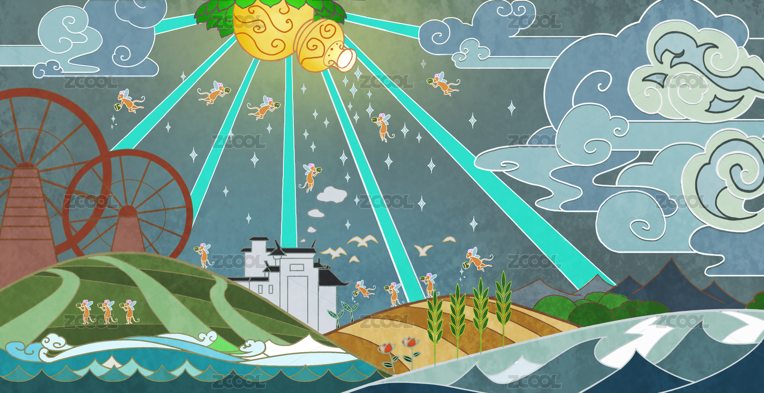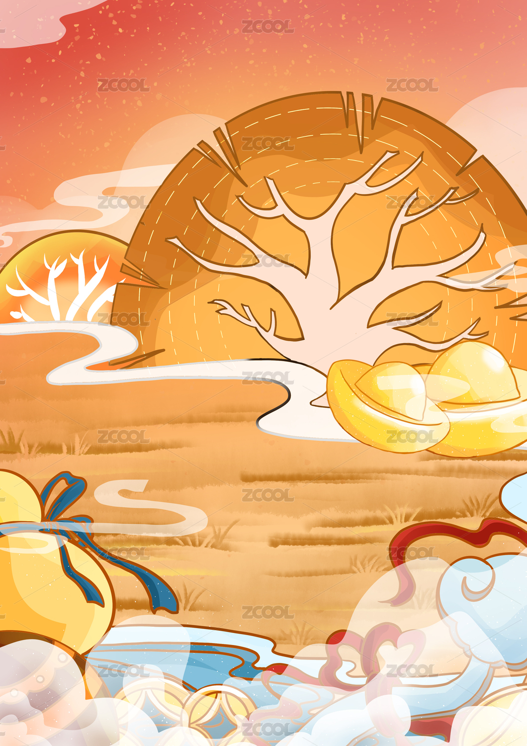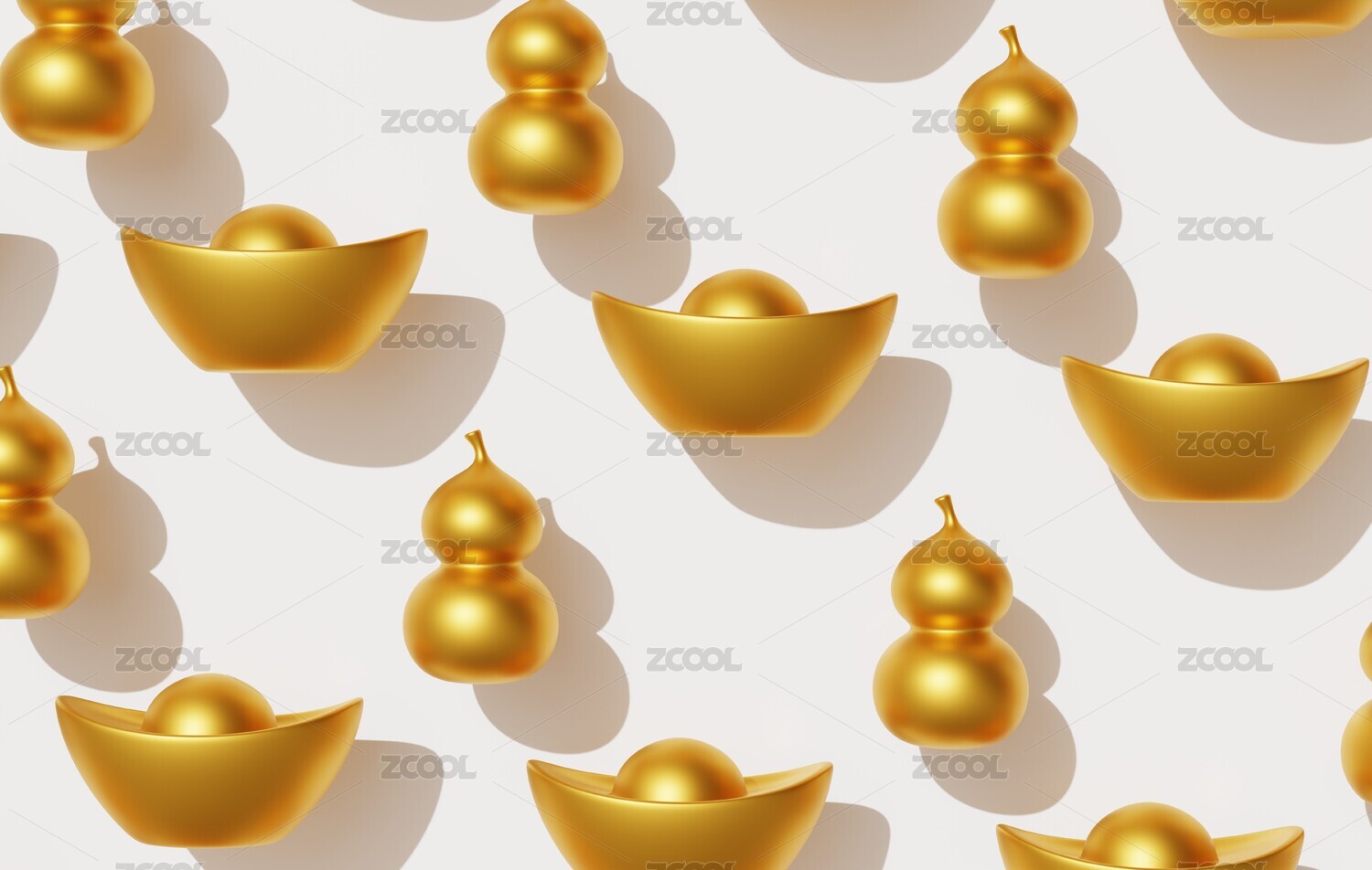国潮喜庆风摇钱树金山玉如意财宝葫芦场景