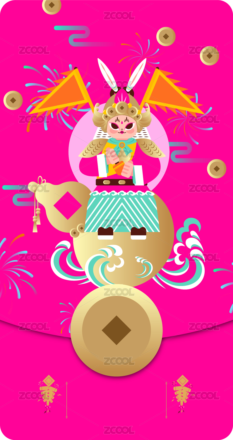 兔年矢量烫金剪纸风复古纹样宝葫芦