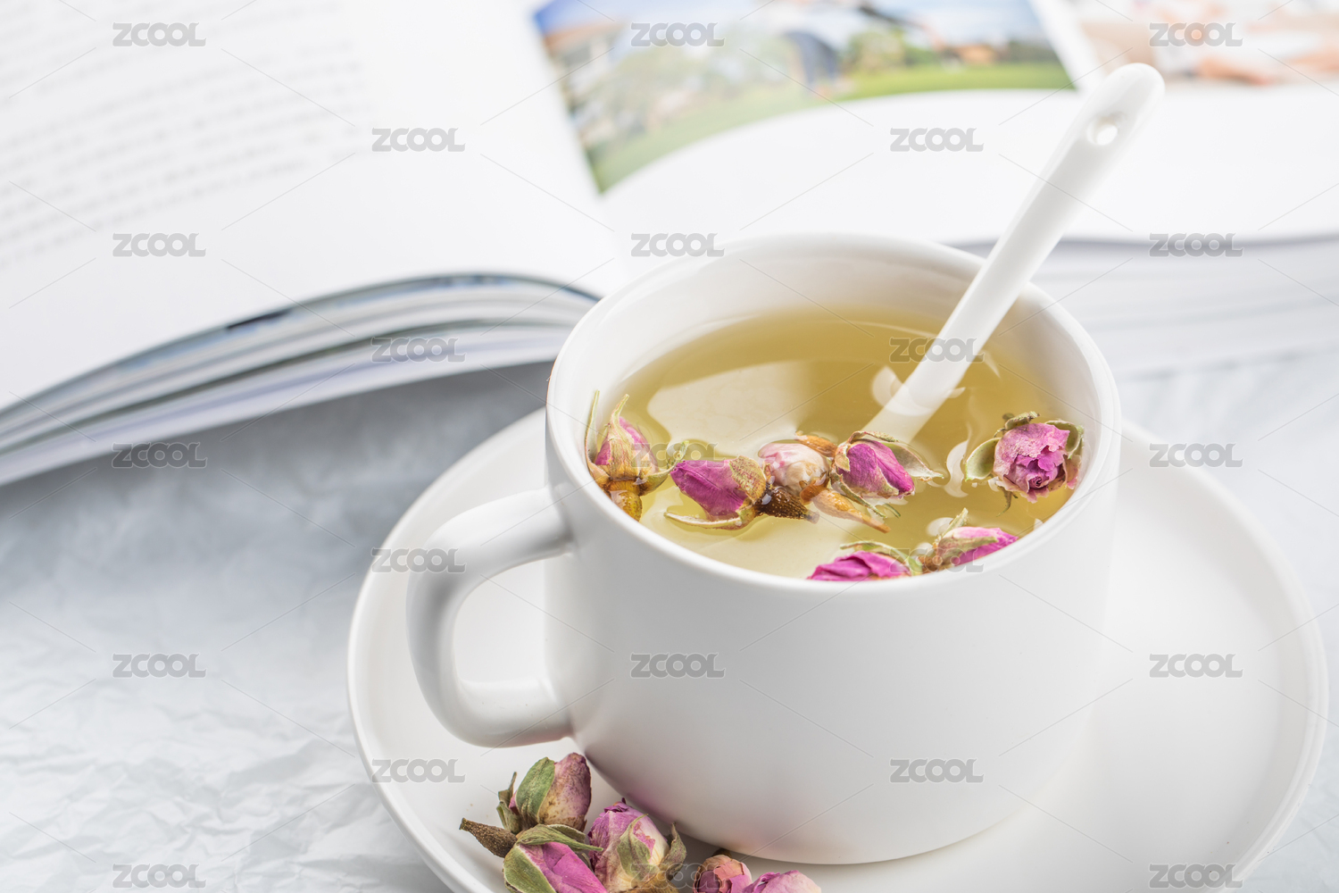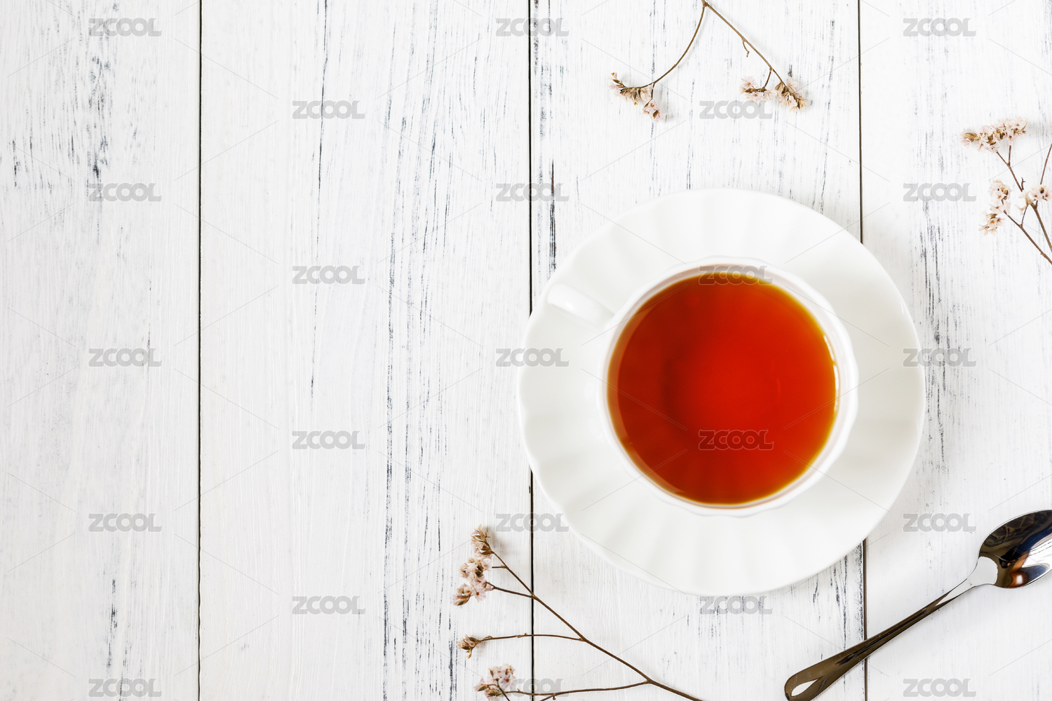 中式茶席上木托盘里的白瓷杯里的茶汤