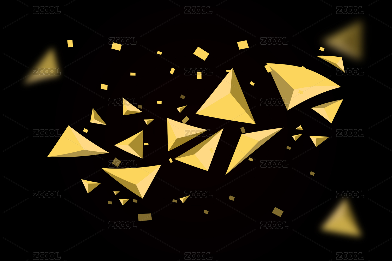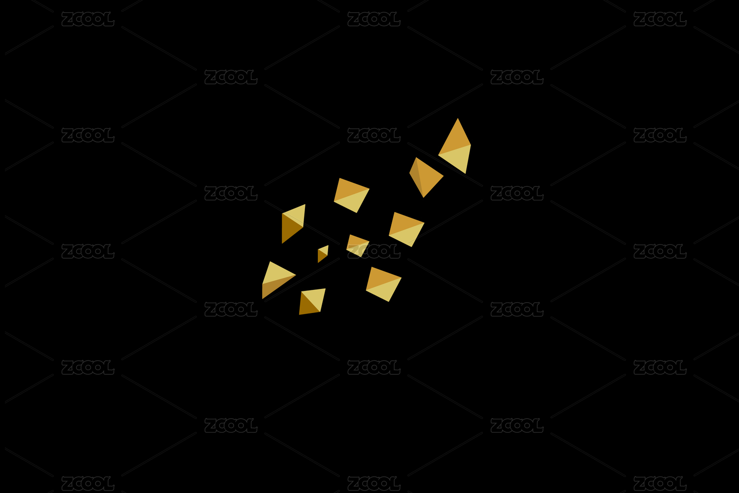 金色碎片与金色三角四面体晶石矢量素材背景