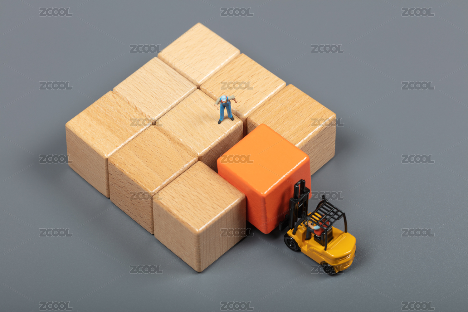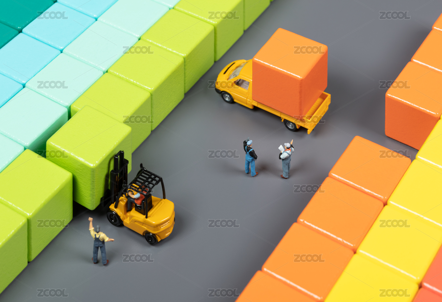微缩创意积木方块抽象的仓库与工人