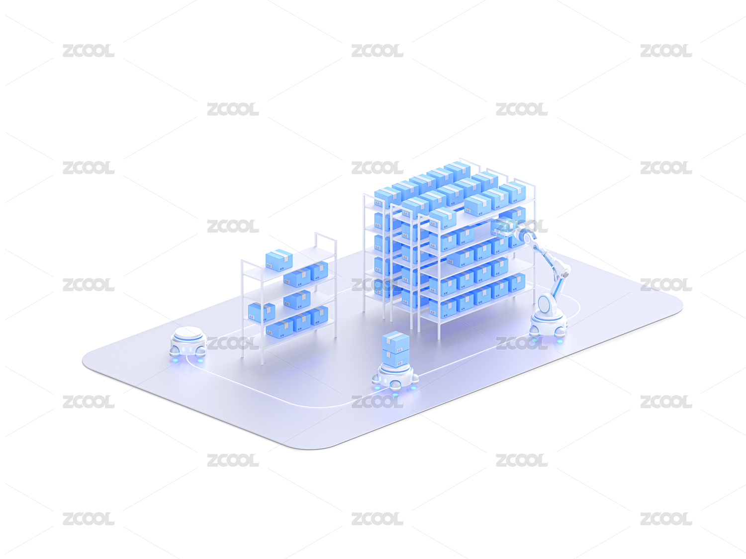 浅色智能自动仓储数字供应链元素3D图标