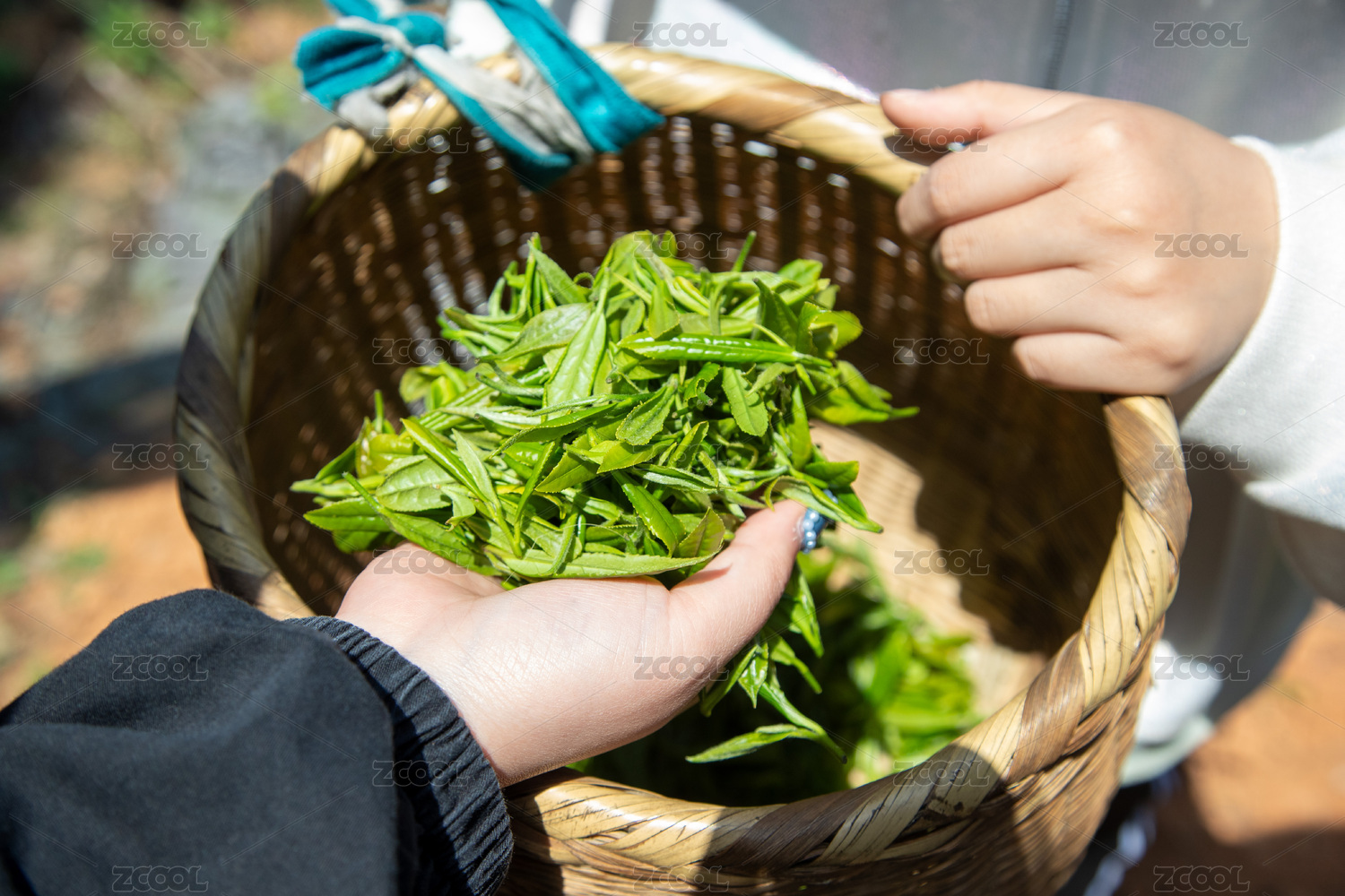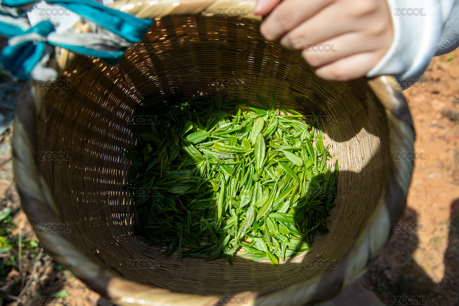 手捧竹篮新采春茶