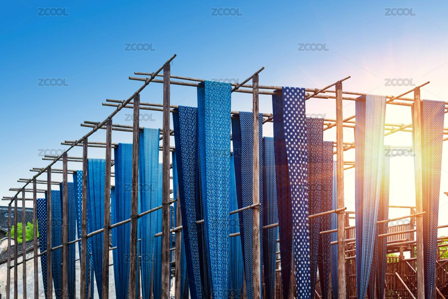 中国云南省大理市染坊里晾晒的蓝夹缬