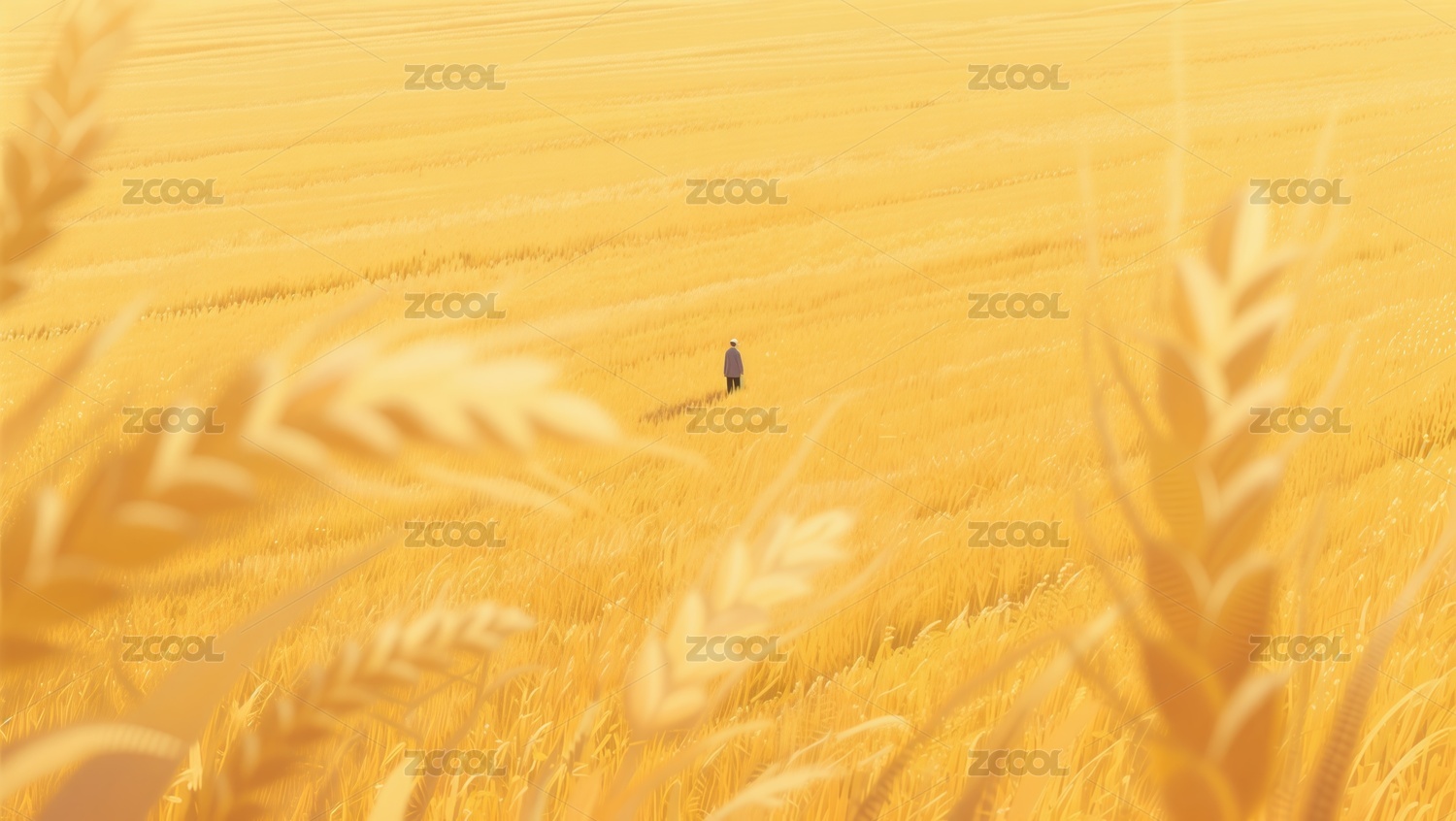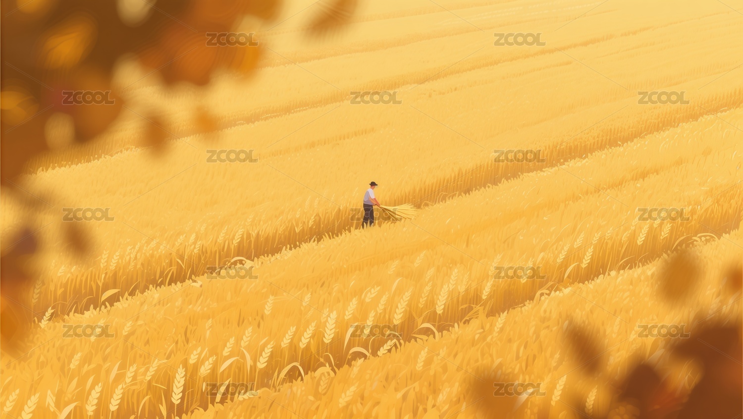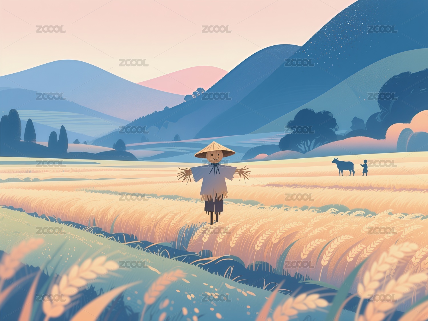 秋分节气3D 麦田牧牛