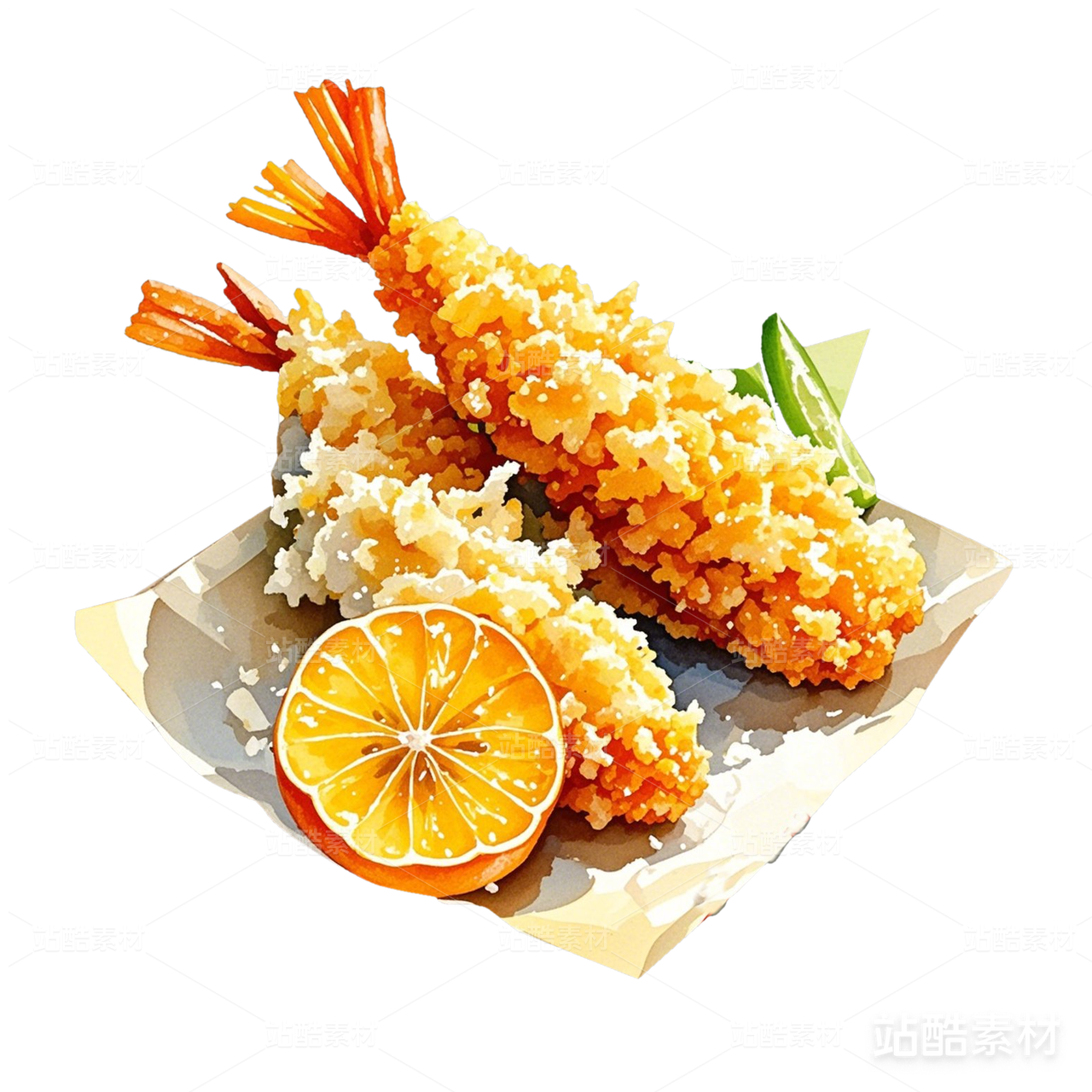 炸虾 |水彩手绘美食素材