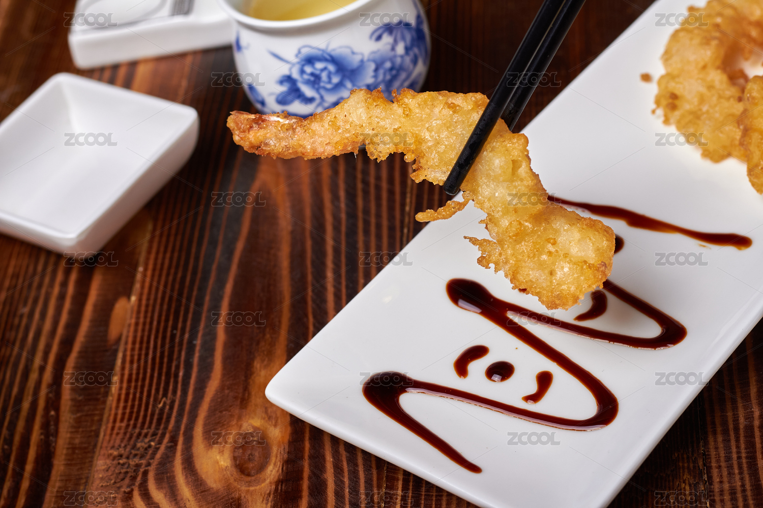 日式天妇罗炸虾和蘸酱