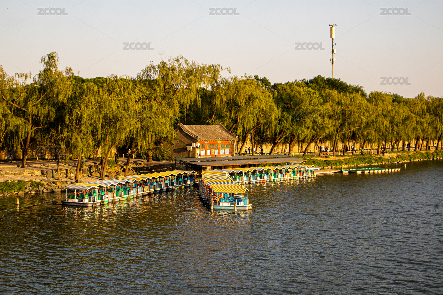 北京玉渊潭公园船坞游船风景摄影