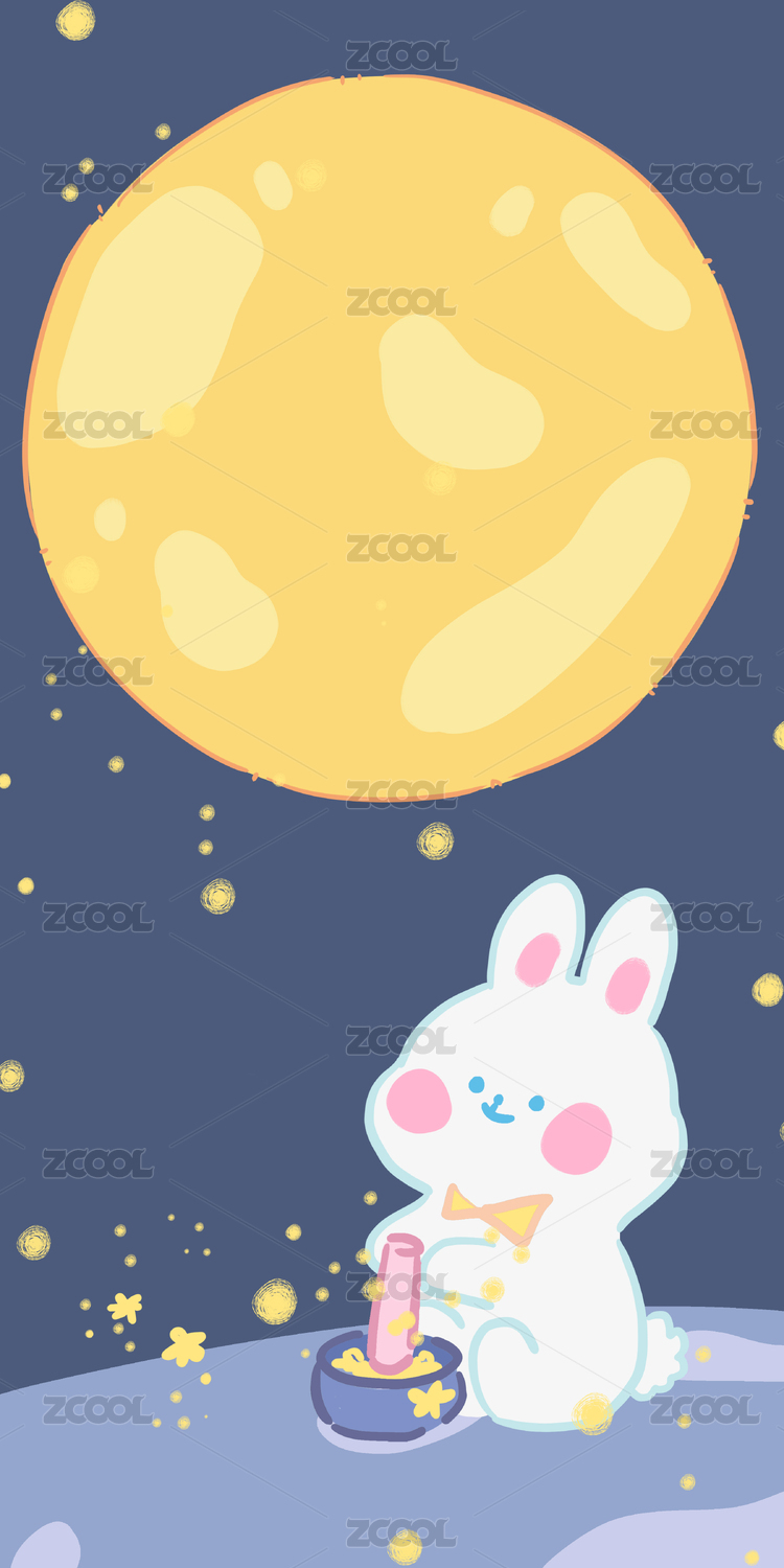 中秋节在月亮上捣年糕的星星月兔 H5海报