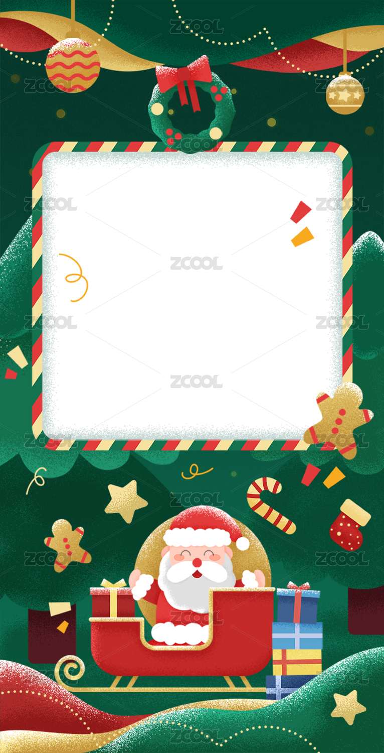 圣诞节圣诞老人坐驯鹿雪橇车送礼物节日插画