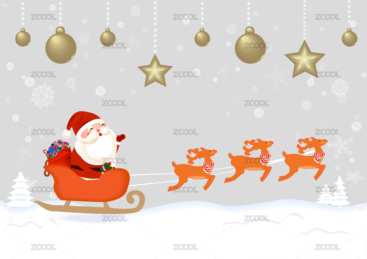 圣诞背景雪橇车载着圣诞老人去派礼物