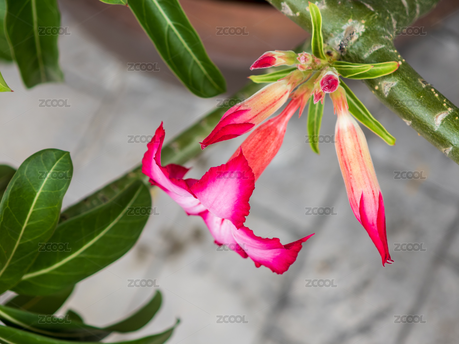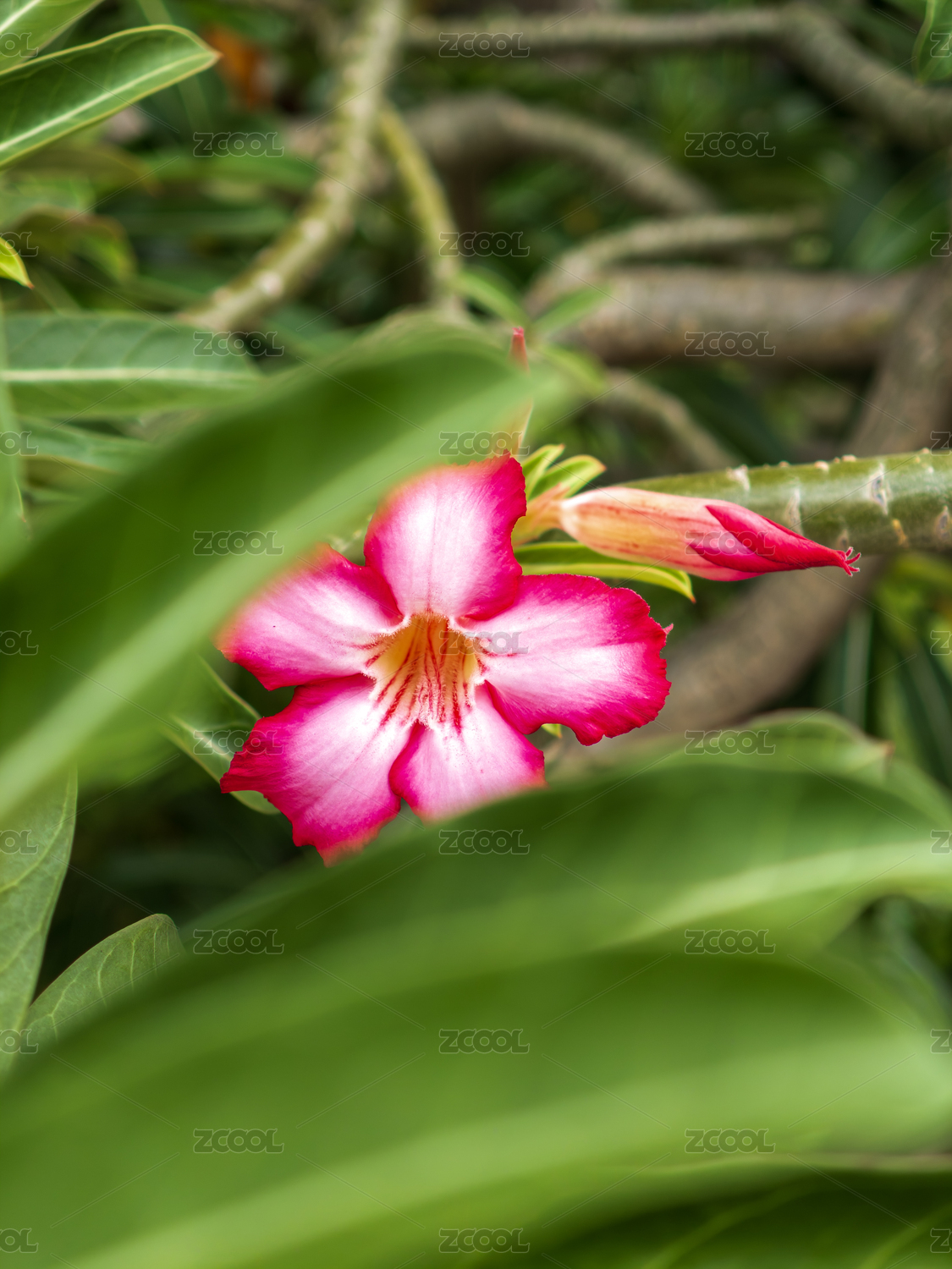 花园里盛开的沙漠玫瑰