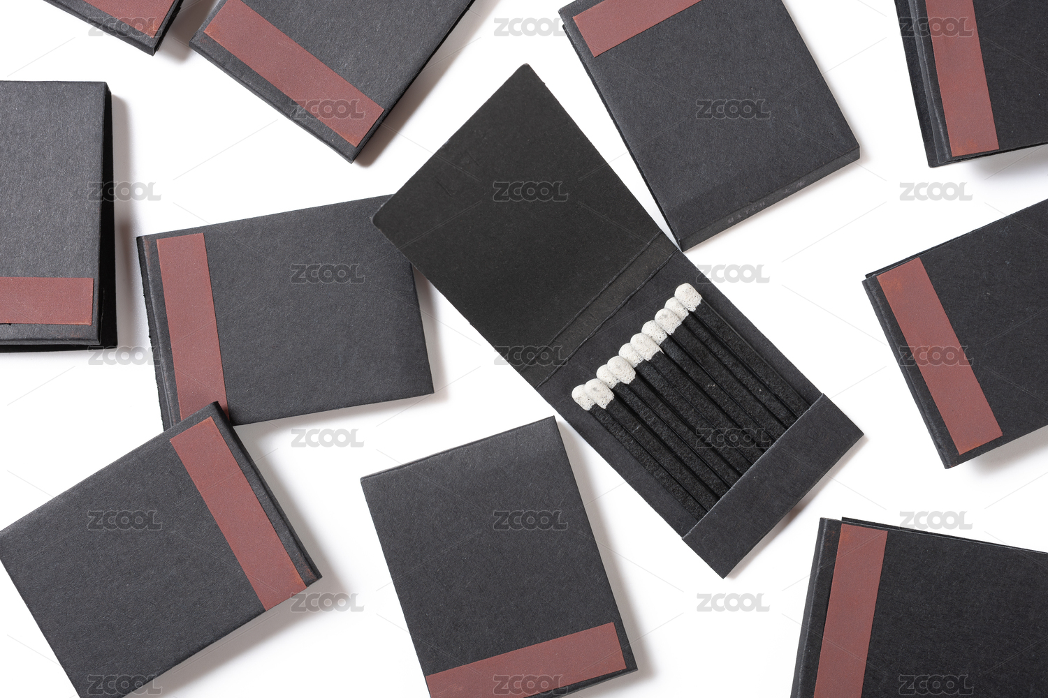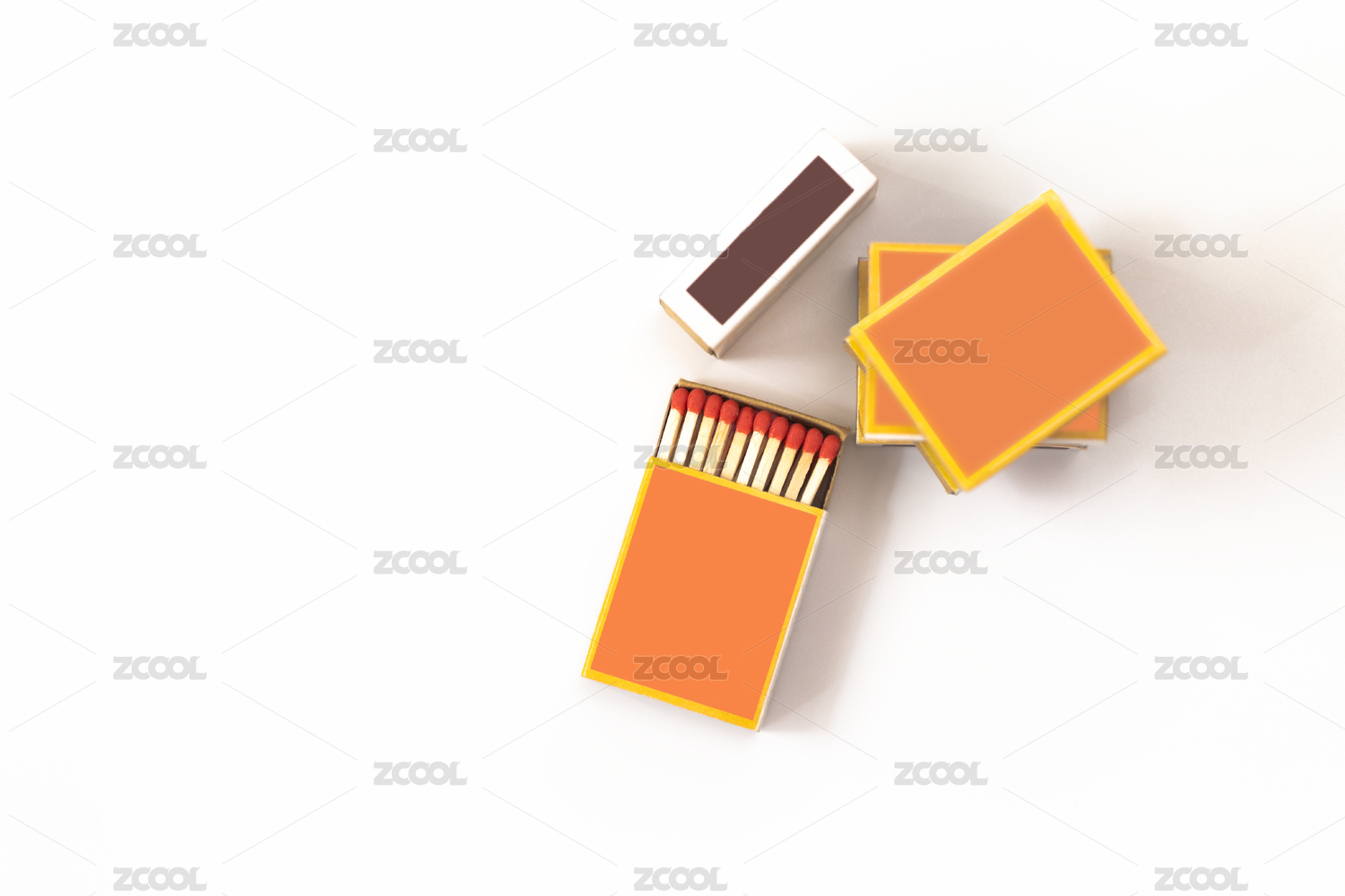 几盒火柴叠在一起放在白色背景中