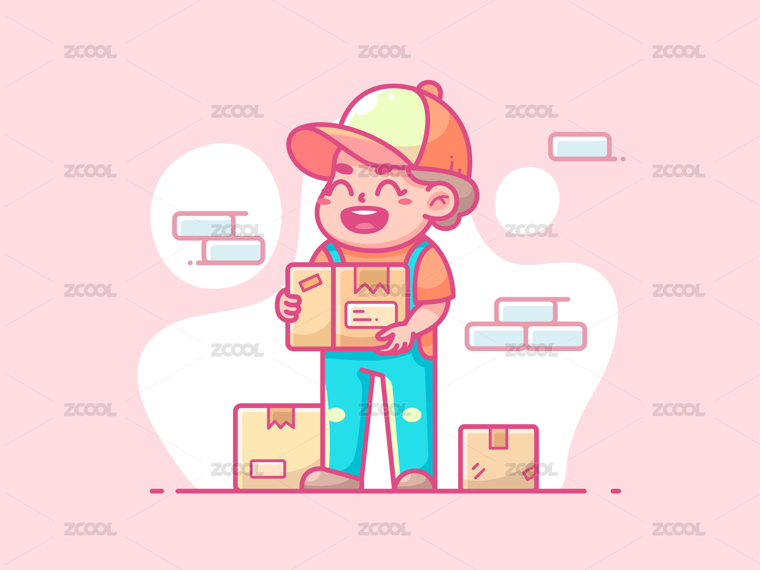 一名男性双板滑雪者 穿着鲜艳的滑雪服在雪地快速滑行 色块风格手绘插画