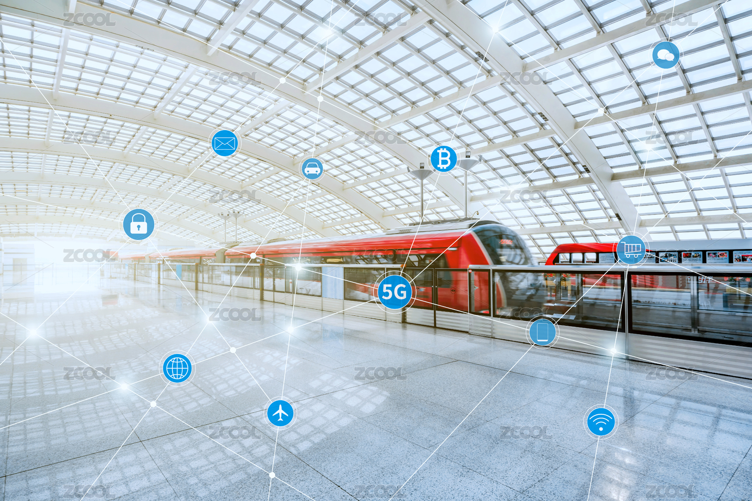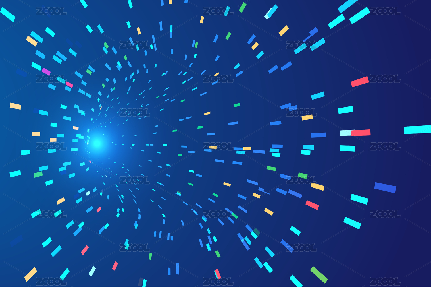宇宙星空、动态粒子构建5G通信技术快速发展概念创意矢量图