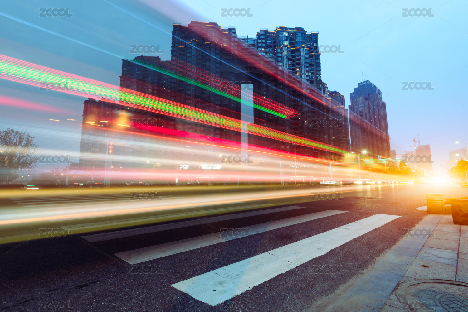 城市景观 飞驰的汽车尾灯形成的光的轨迹
