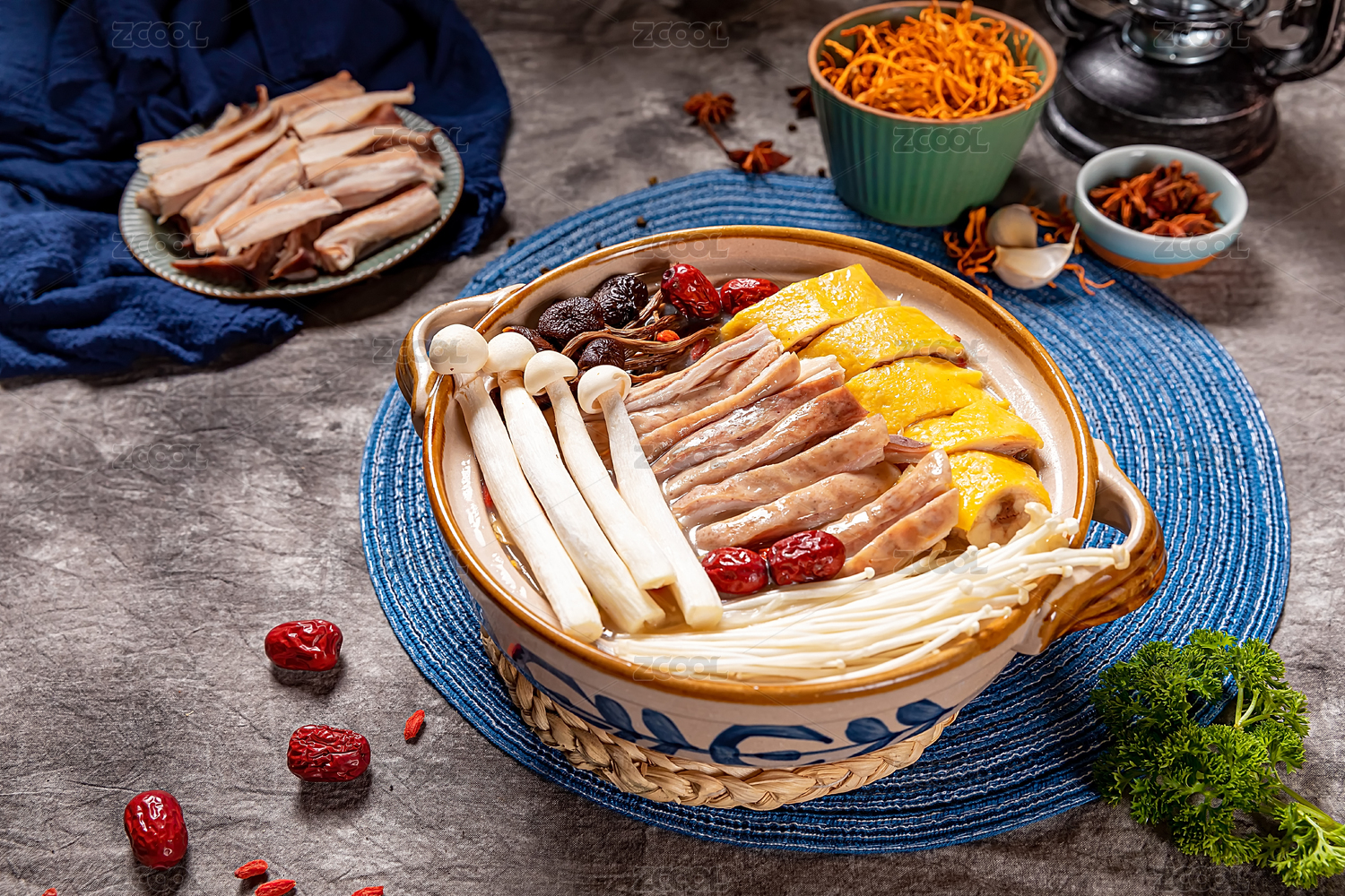 中餐传统美食锅仔猪肚鸡