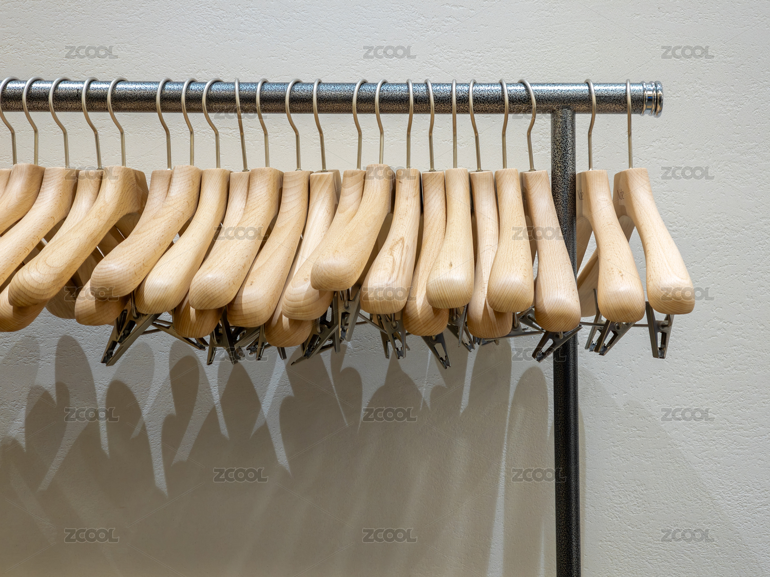 挂在横梁上的木质衣架特写