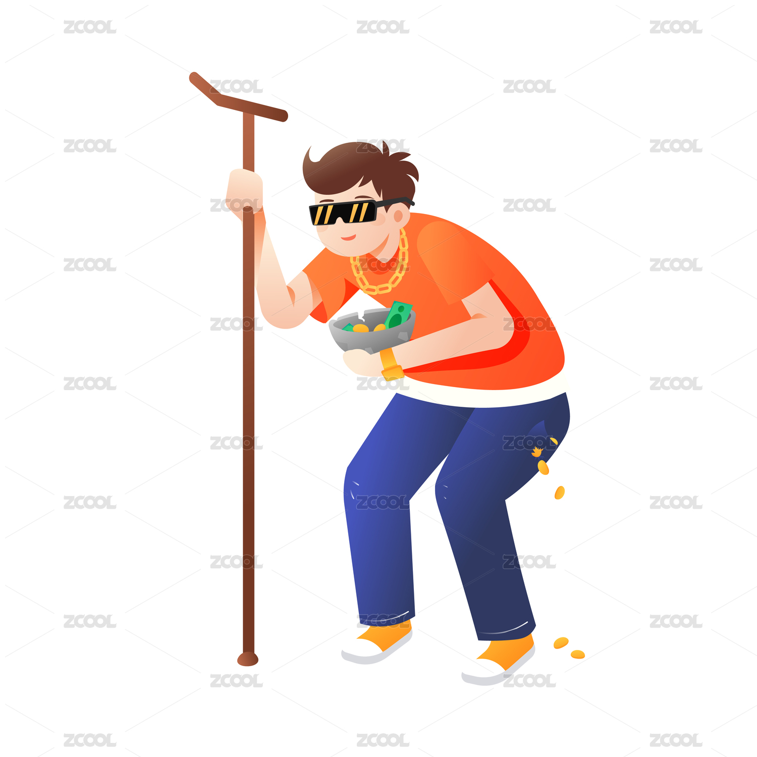 网络乞丐矢量插画