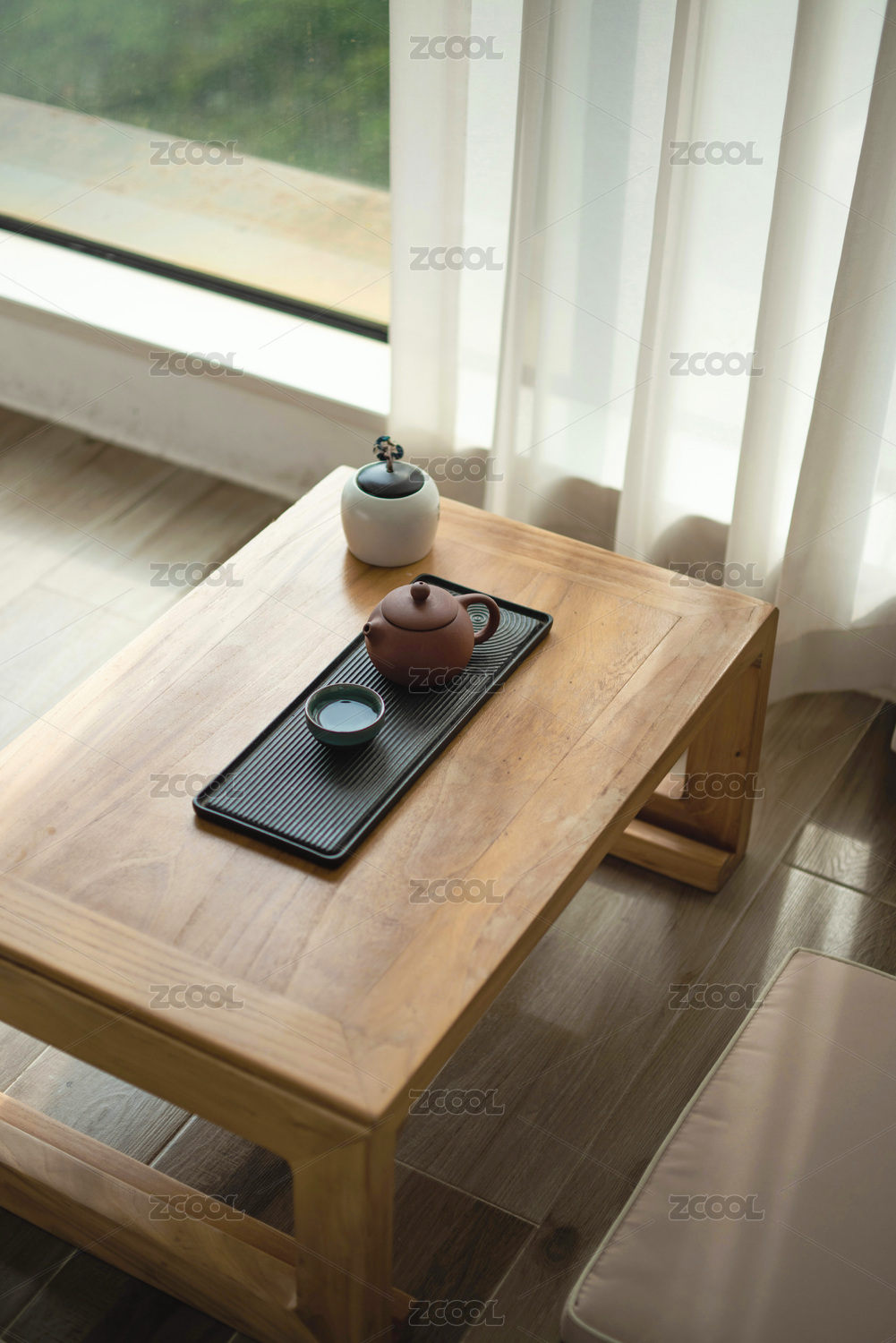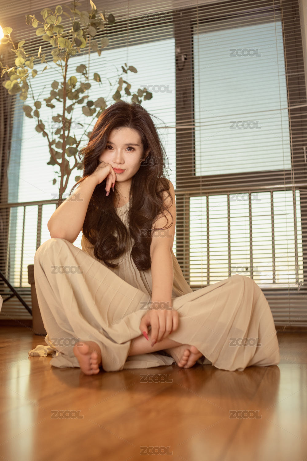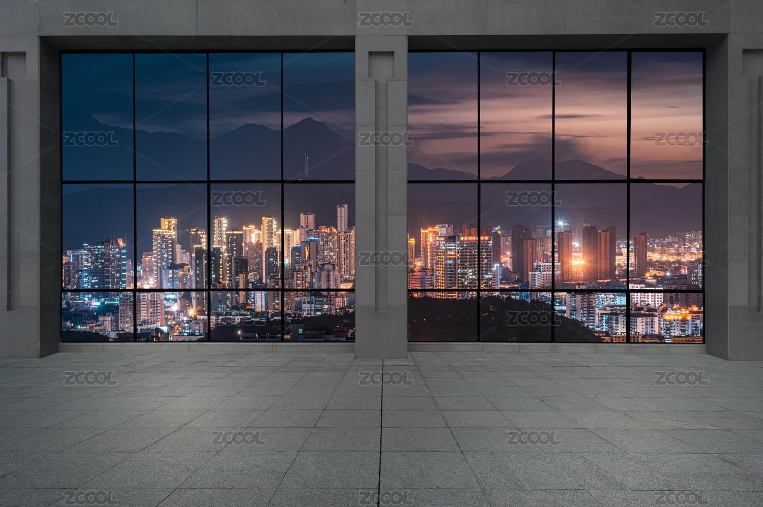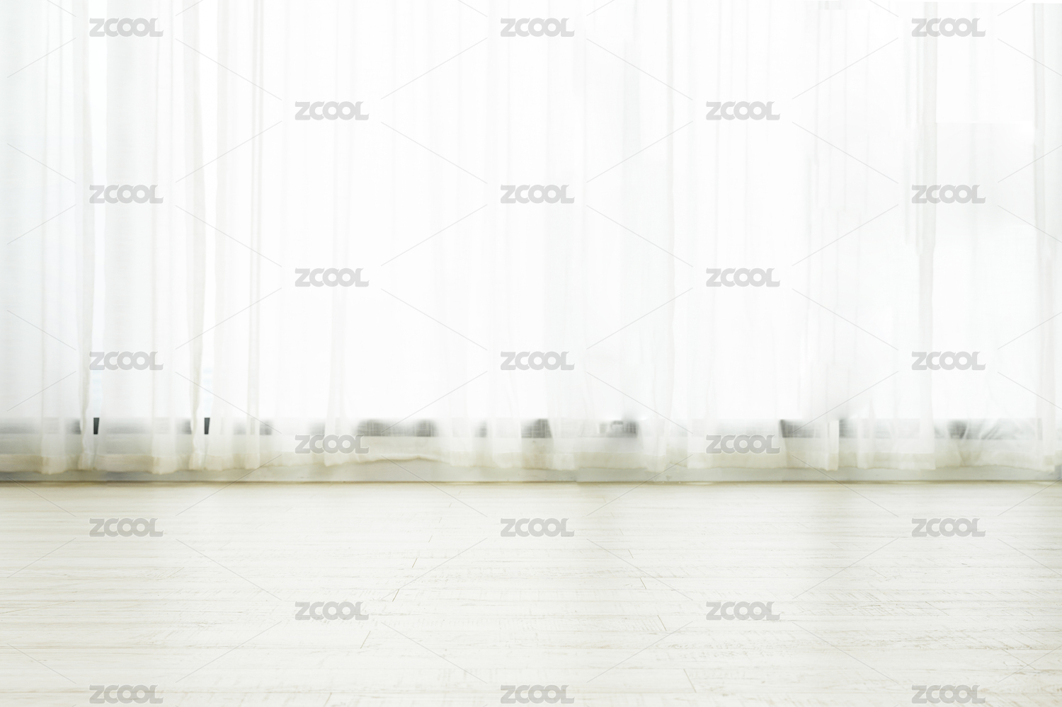 客厅房间中落地窗窗帘地毯台灯电视机家具