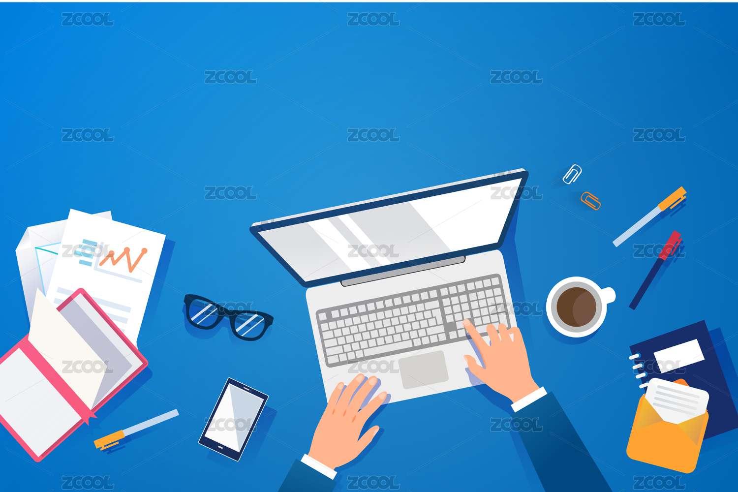 职业规划年终总结商务办公概念俯视图背景矢量插画
