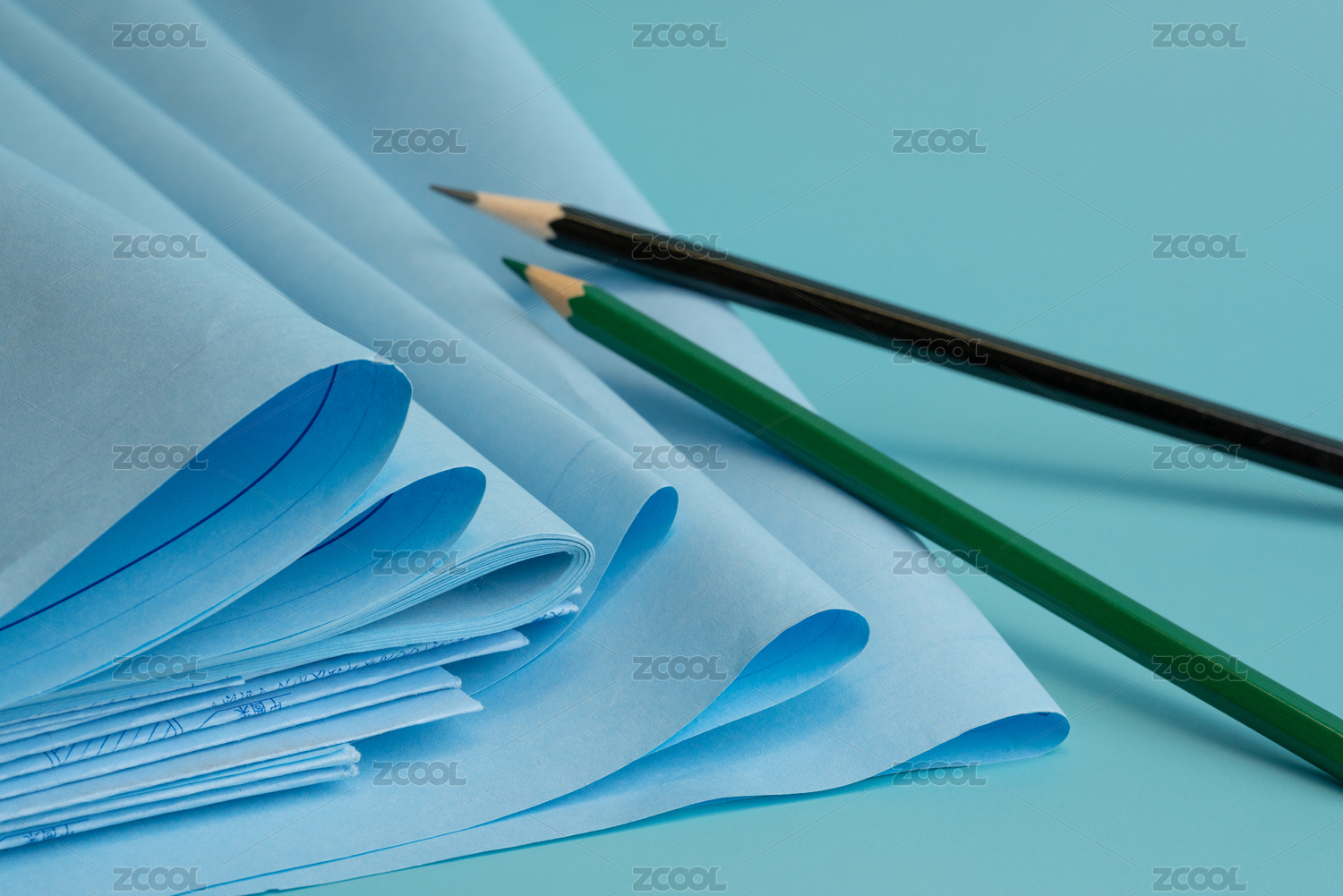 铅笔和蓝图的创意静物图