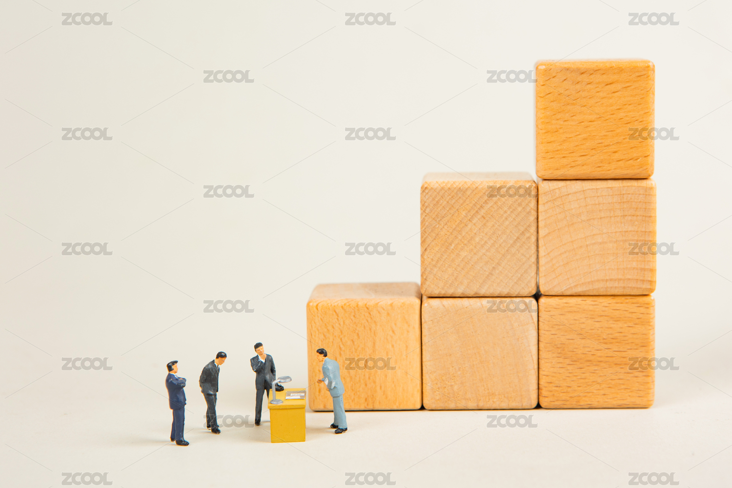 人群站在积木阶梯上